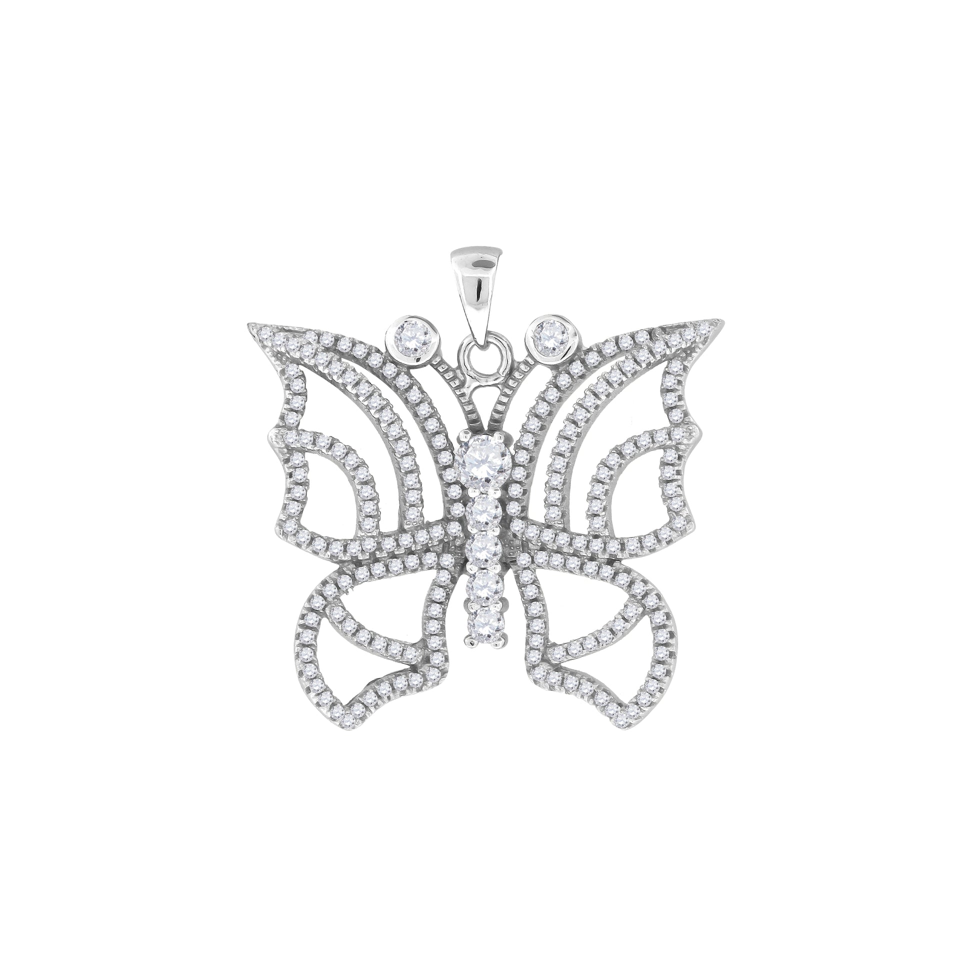 Sterling Silver Womens Cubic Zirconia Butterfly Charm Pendant