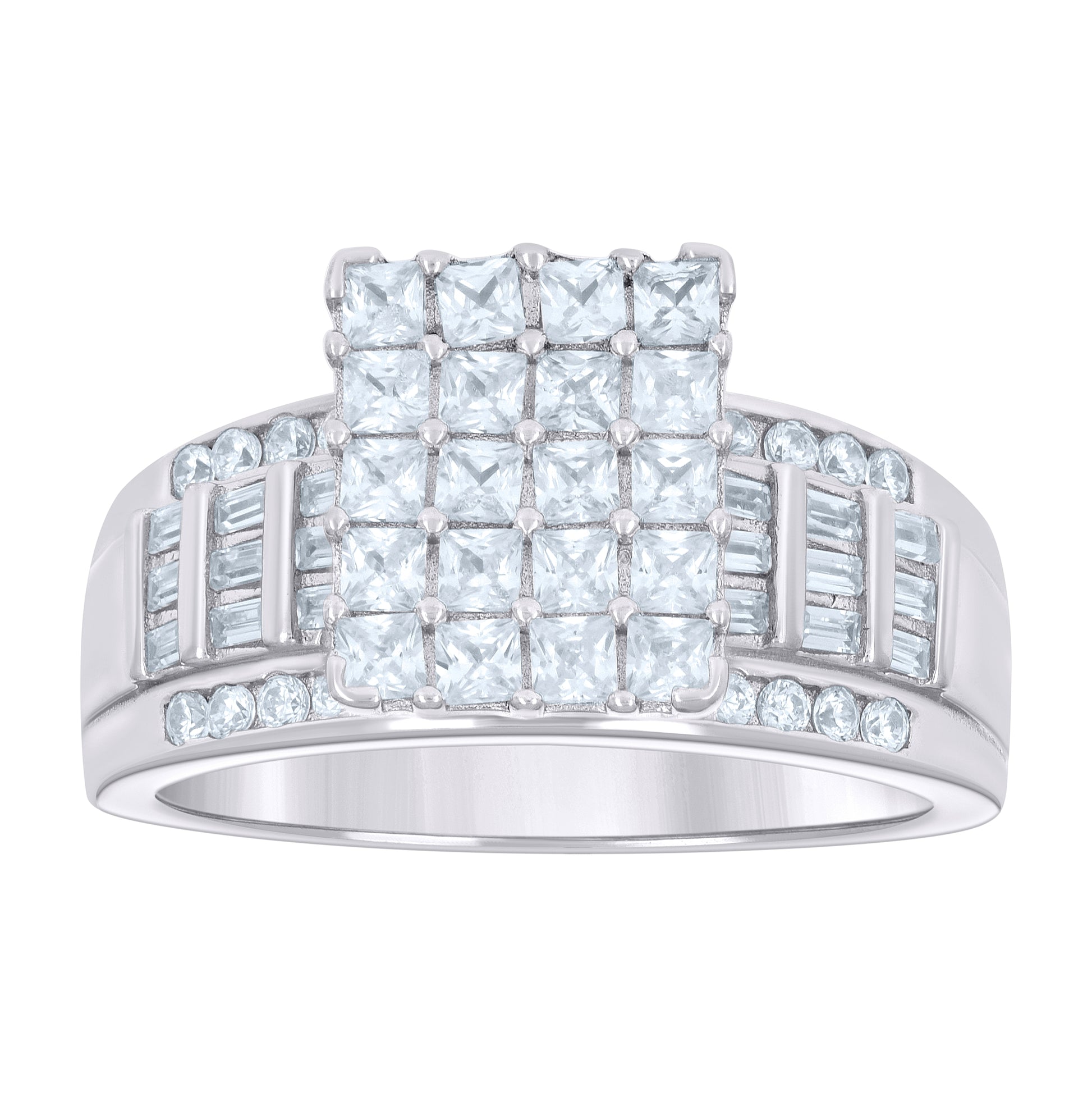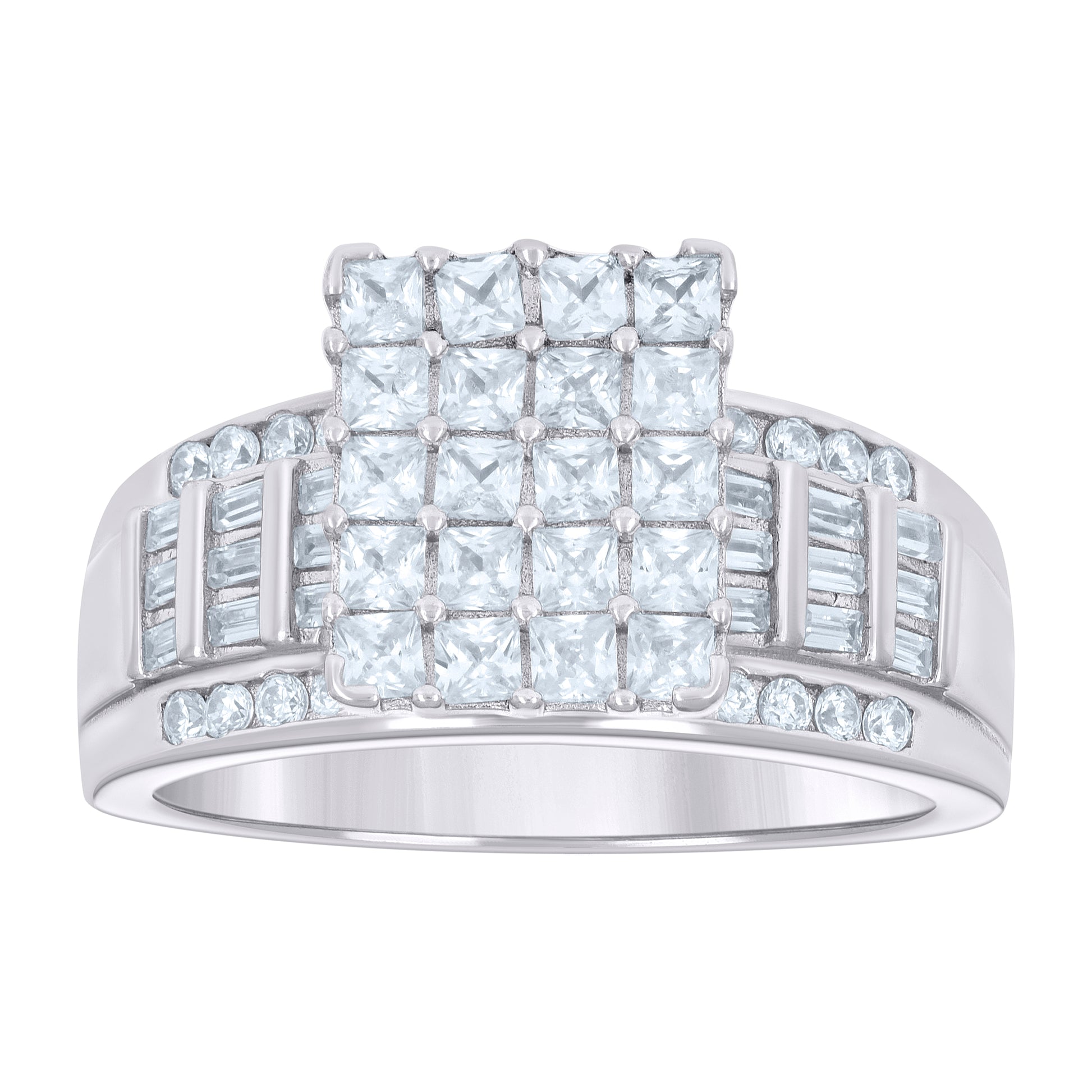 Sterling Silver Womens Cubic Zirconia Cinderella Bridal Anniversary Wedding Engagement Band Ring