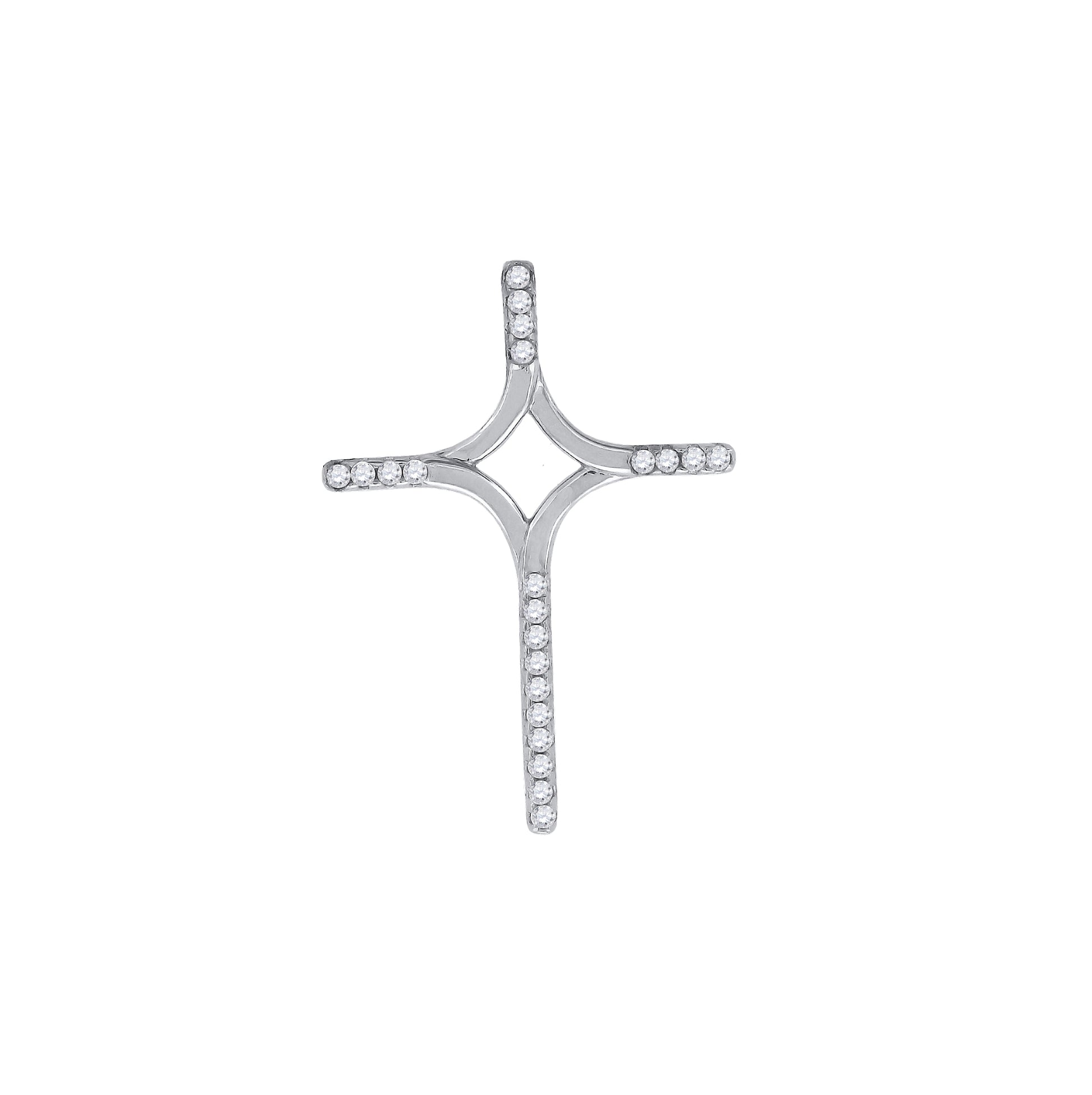 Sterling Silver Womens Cubic Zirconia Cross Religious Charm Pendant