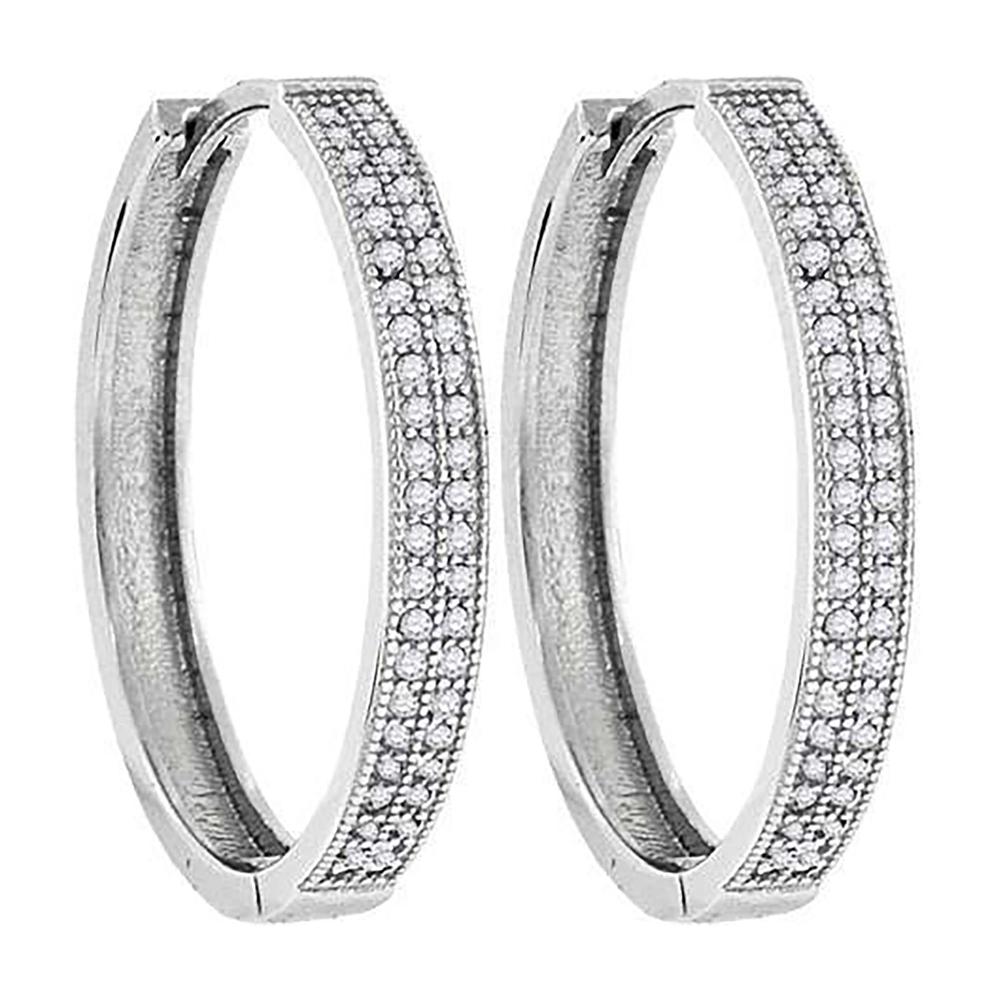 Sterling Silver Womens Cubic Zirconia Double Row Hoop Earrings