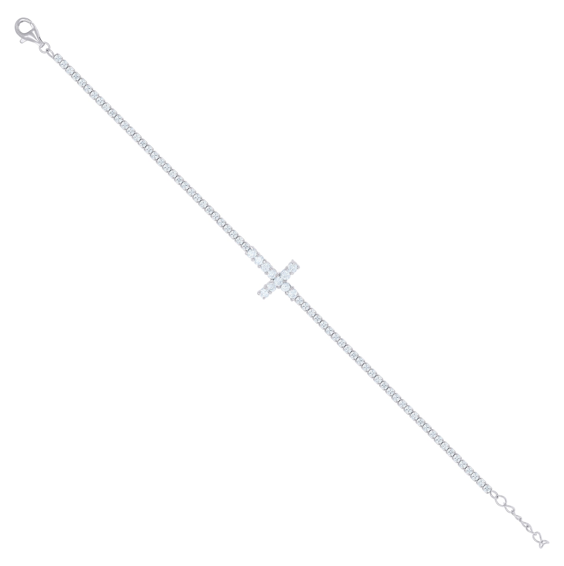 Sterling Silver Womens Cubic Zirconia Fancy Cross Bracelet