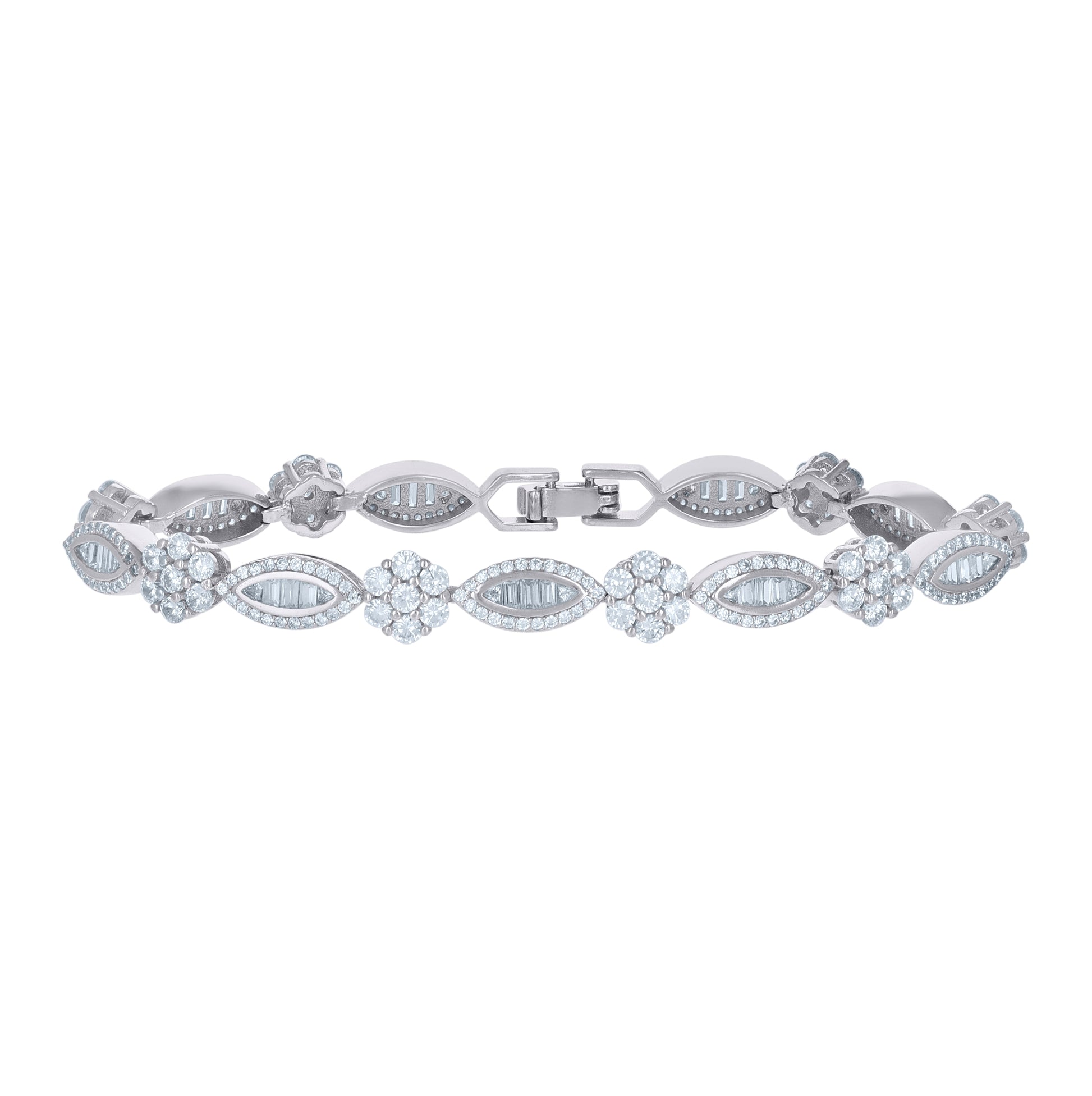 Sterling Silver Womens Cubic Zirconia Fancy Link Flower Adjustable Bracelet