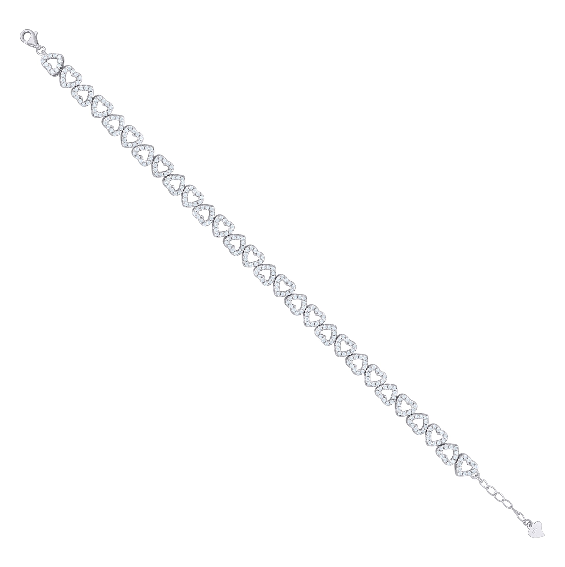 Sterling Silver Womens Cubic Zirconia Fancy Link Heart Adjustable Bracelet
