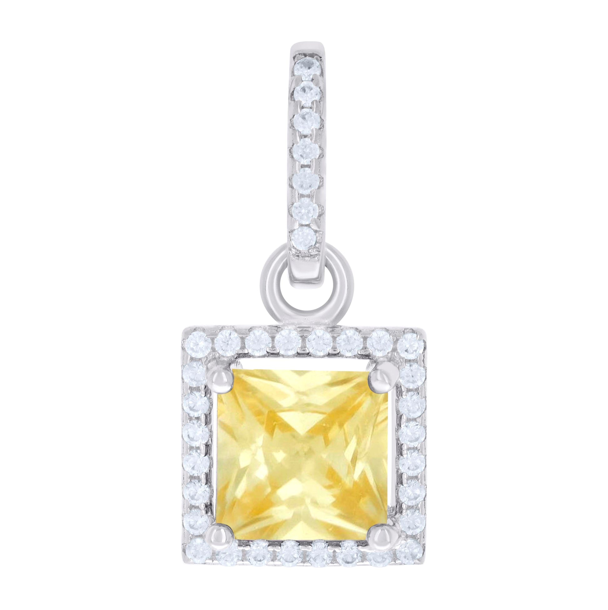Sterling Silver Womens Cubic Zirconia Fashion Square Charm Pendant