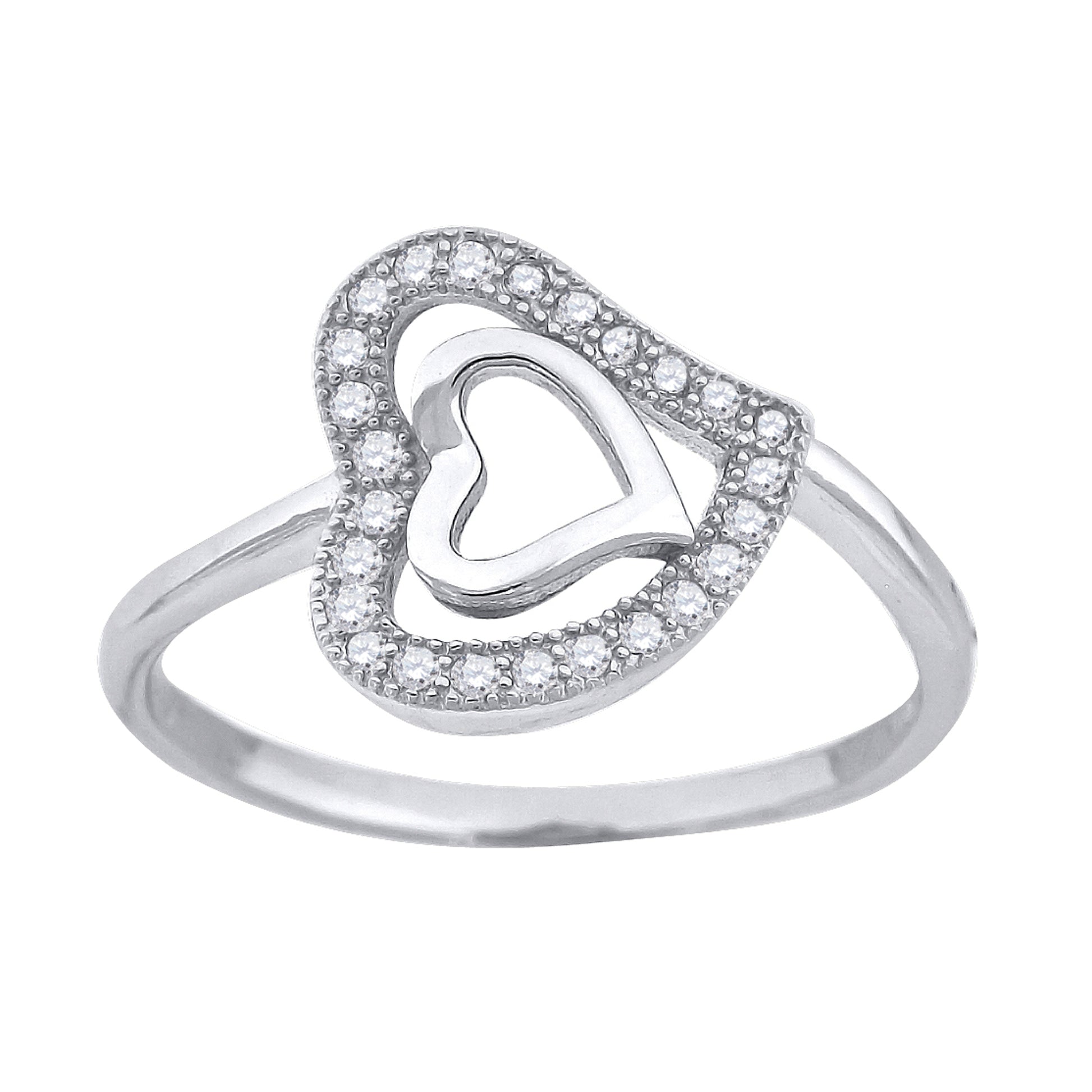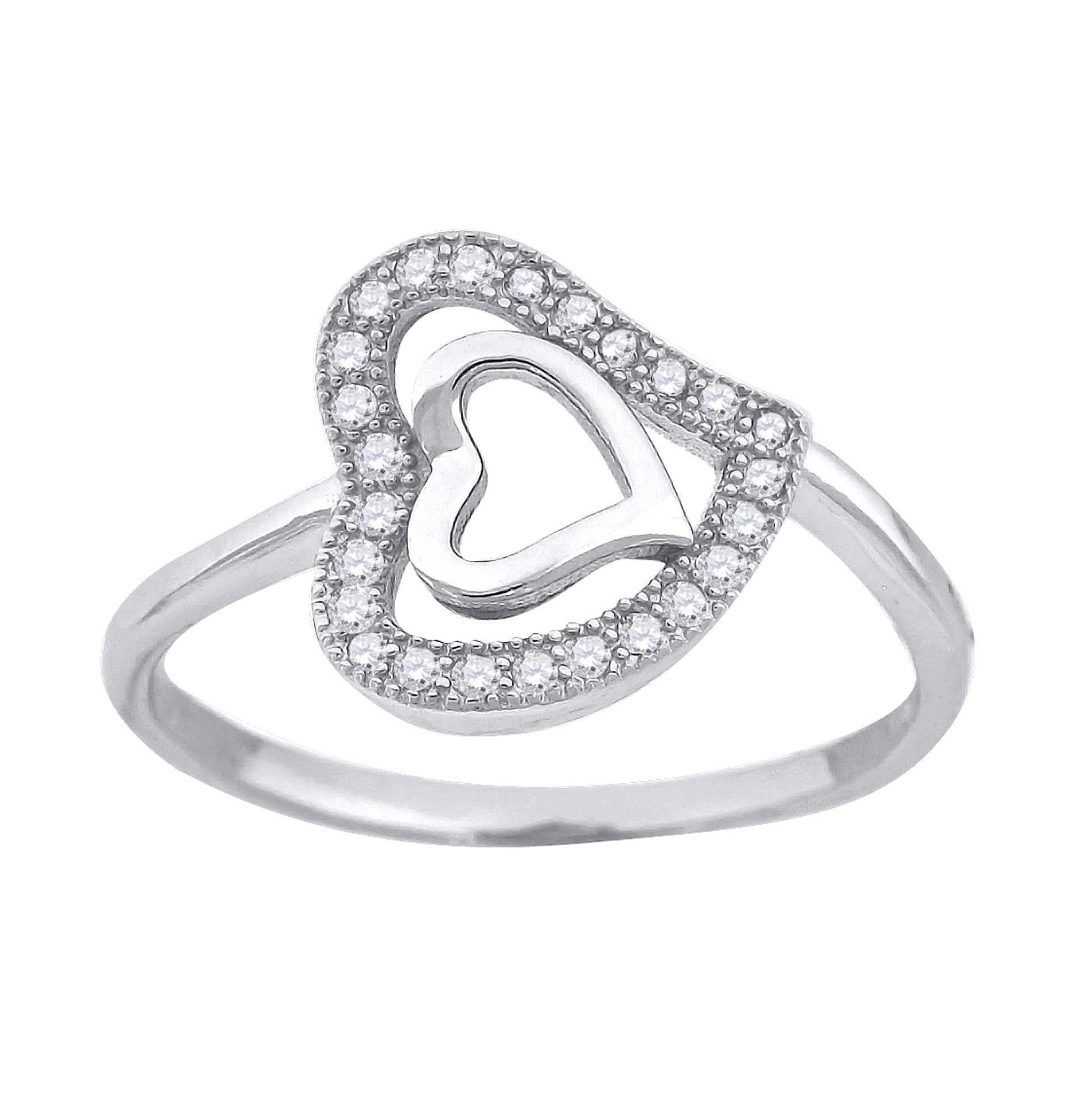 Sterling Silver Women's Cubic Zirconia Heart Bridal Anniversary Wedding Engagement Band Ring
