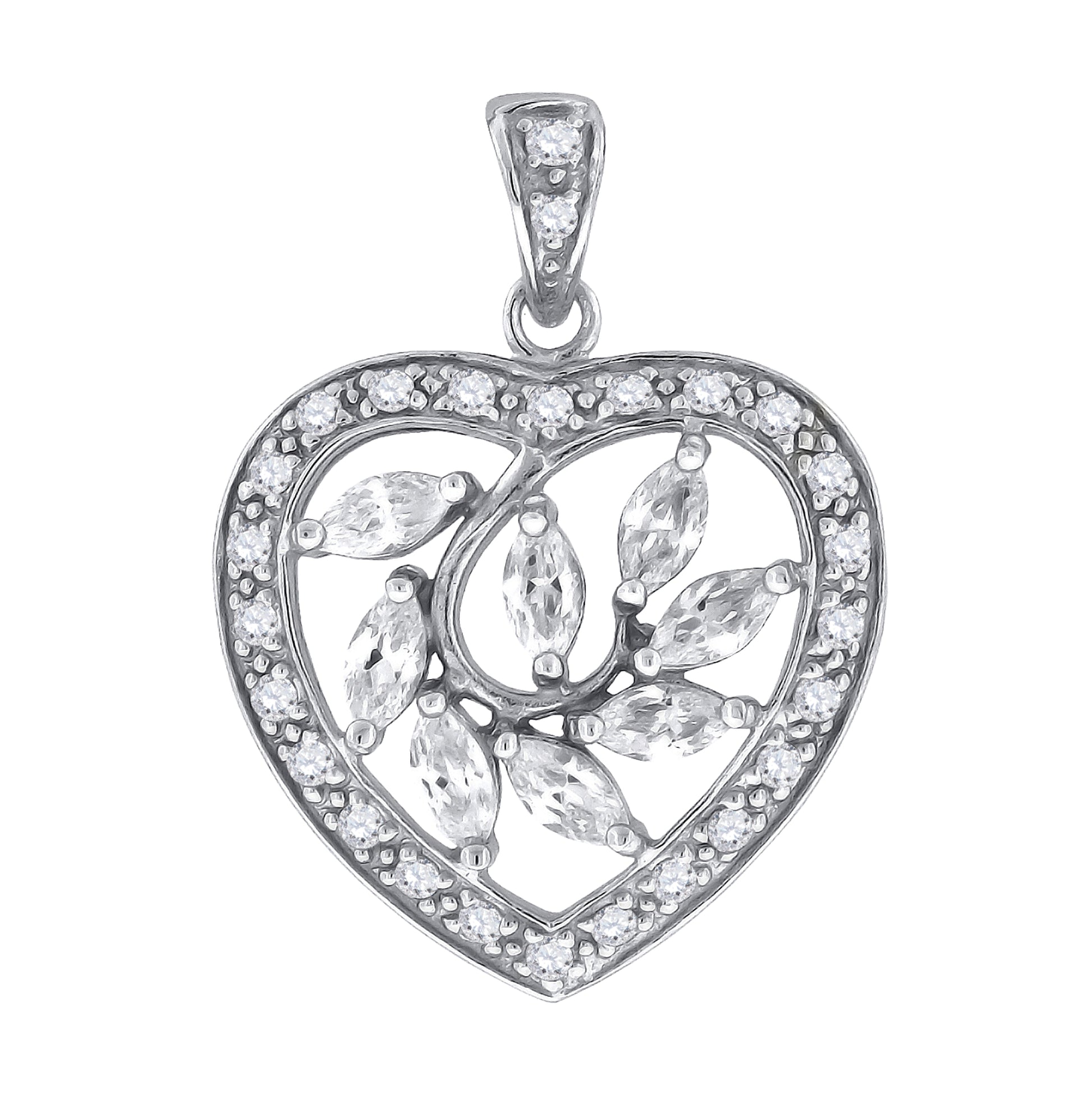 Sterling Silver Womens Cubic Zirconia Heart Charm Pendant