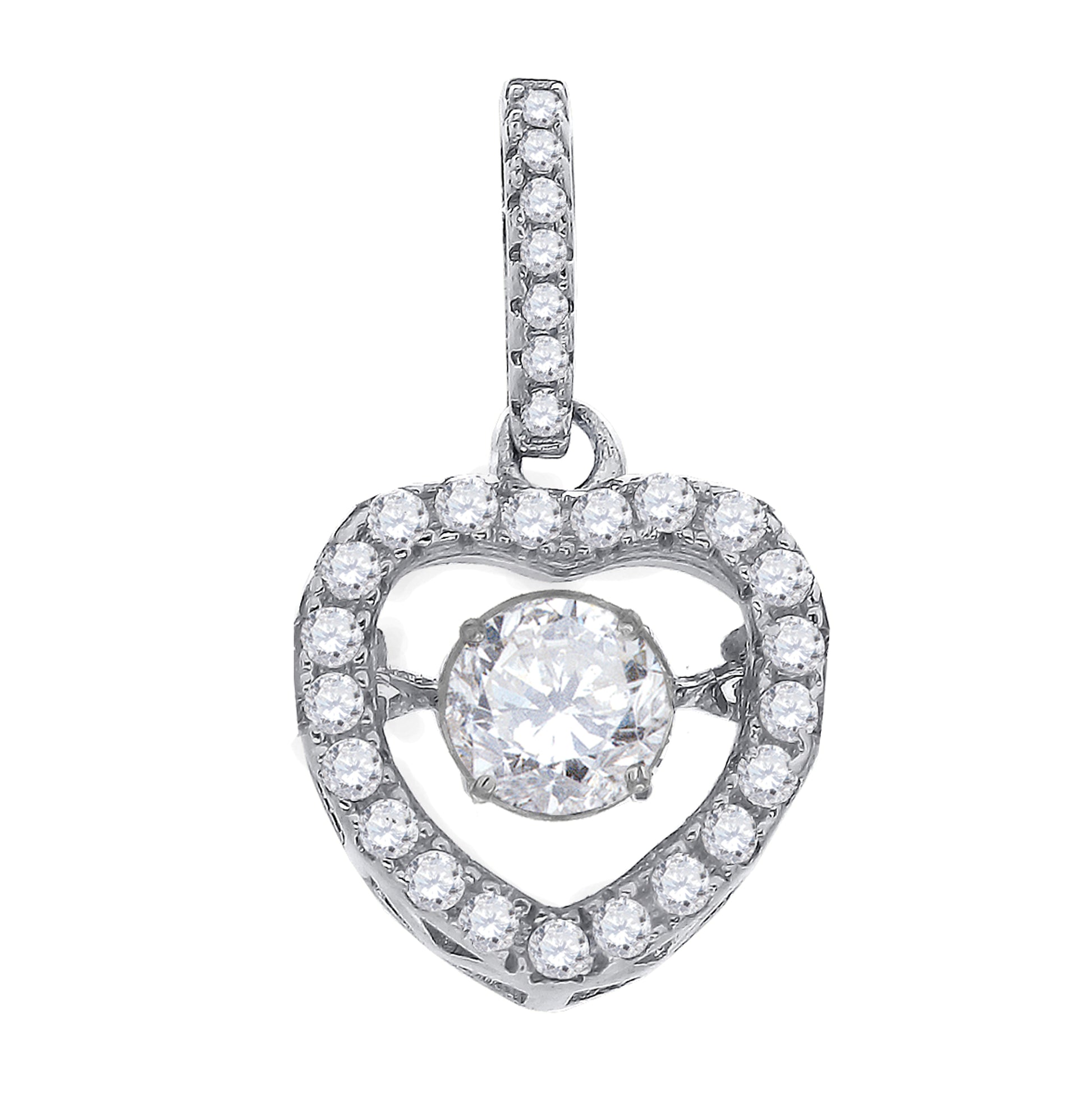 Sterling Silver Womens Cubic Zirconia Heart Charm Pendant
