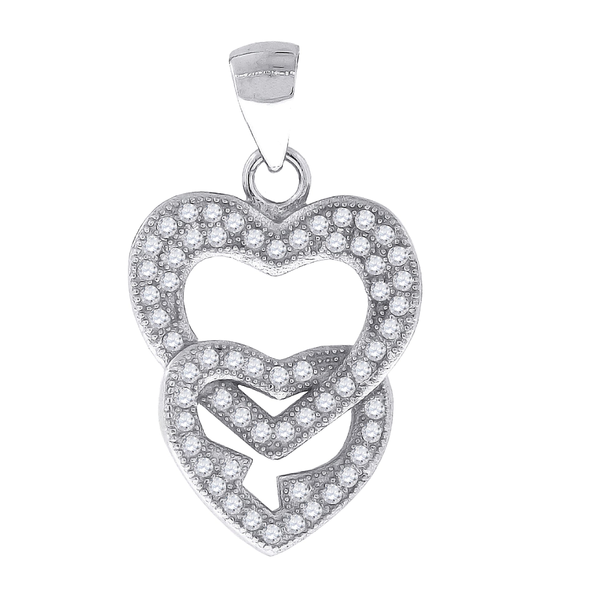 Sterling Silver Womens Cubic Zirconia Heart Intertwined Hearts Charm Pendant