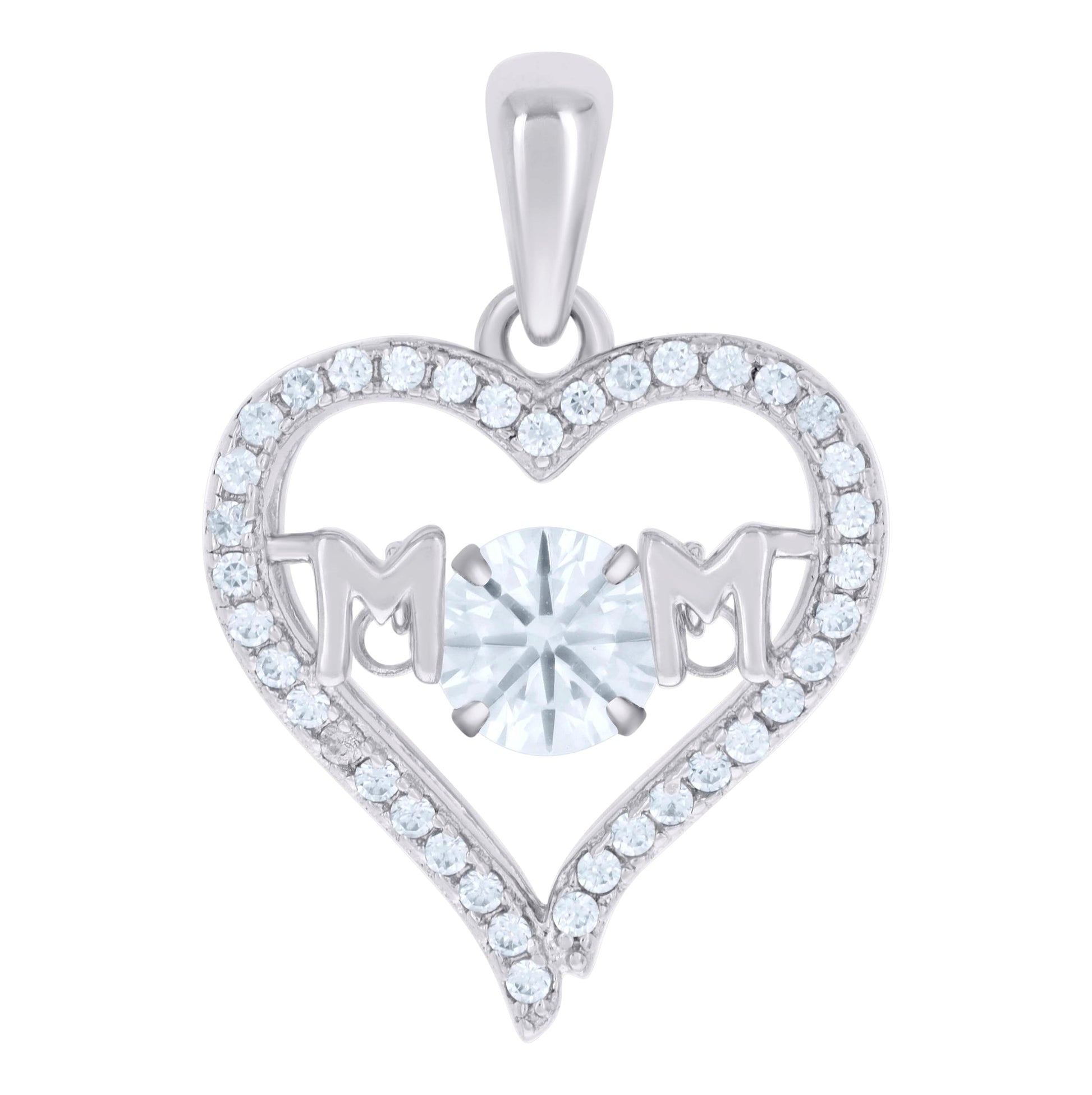 Sterling Silver Womens Cubic Zirconia Heart Mom Talking Charm Pendant