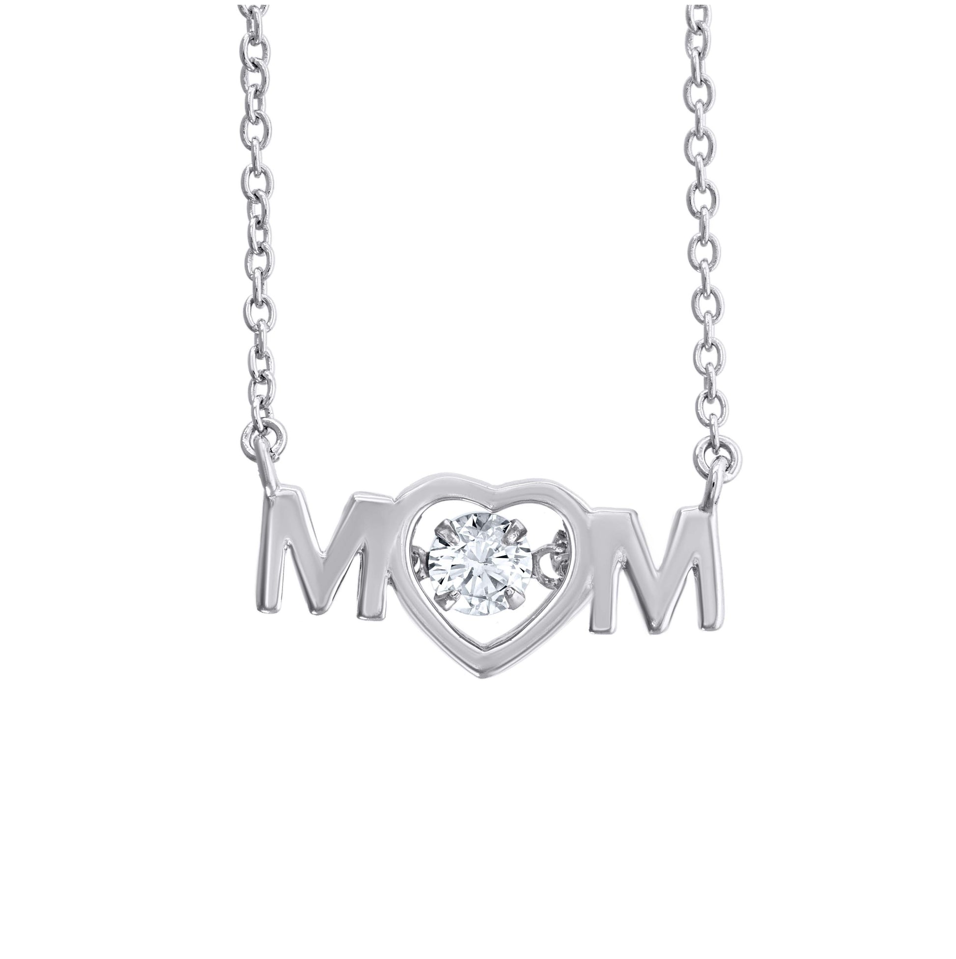 Sterling Silver Womens Cubic Zirconia Heart Mom Talking Charm Pendant