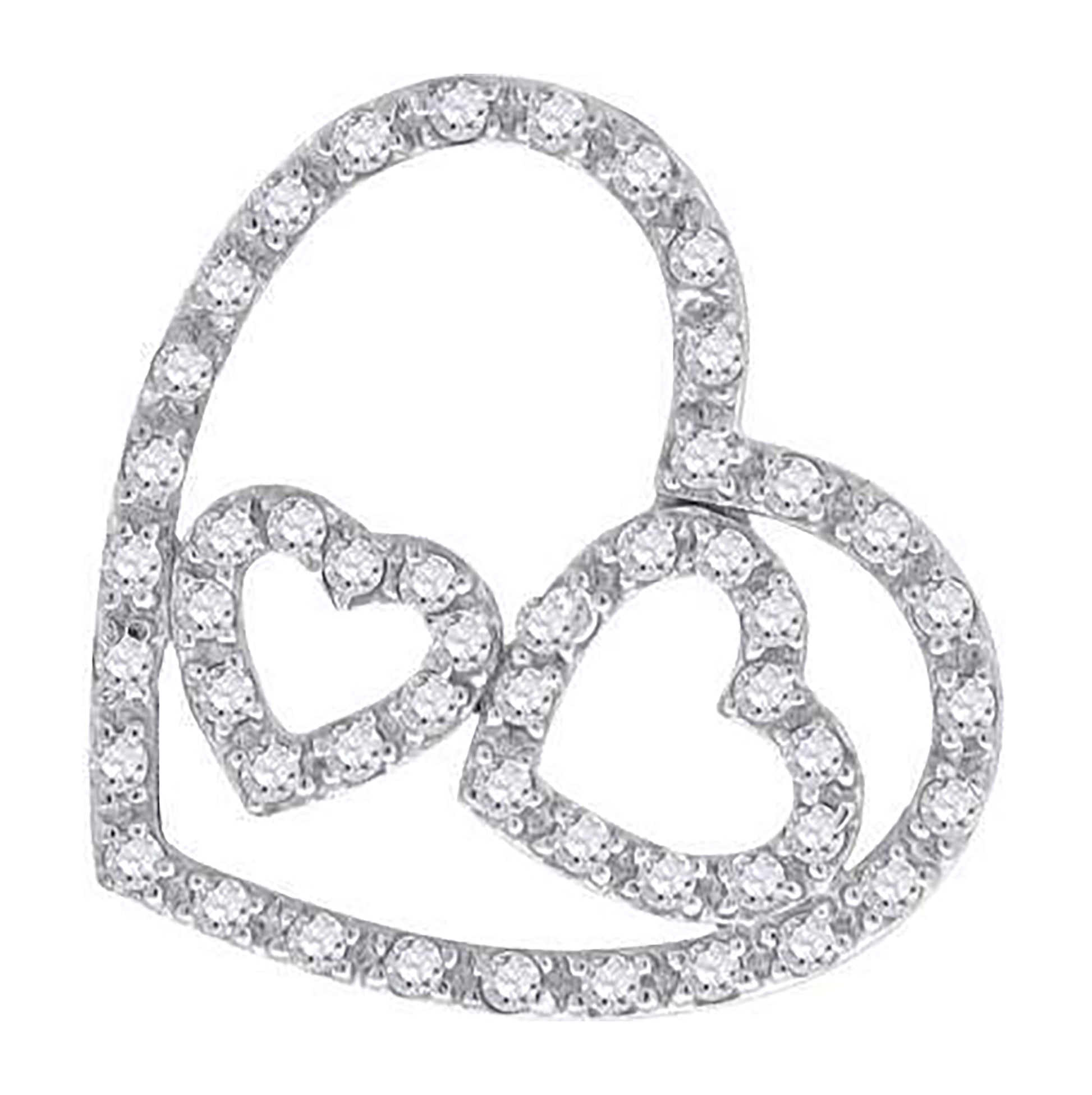 Sterling Silver Womens Cubic Zirconia Heart Triple Charm Pendant