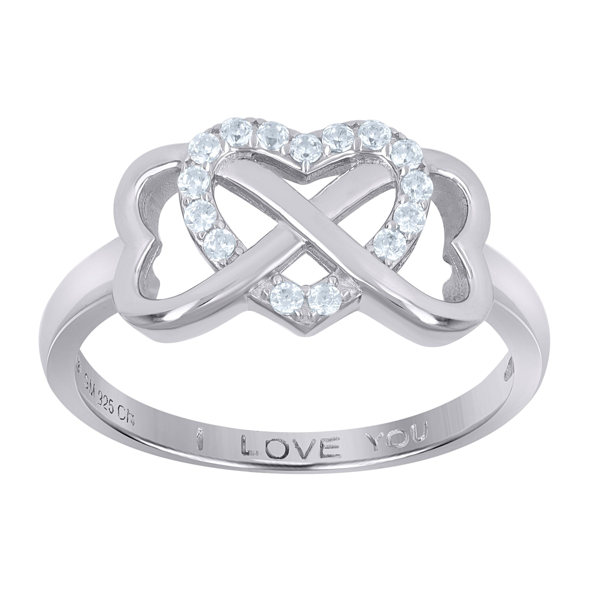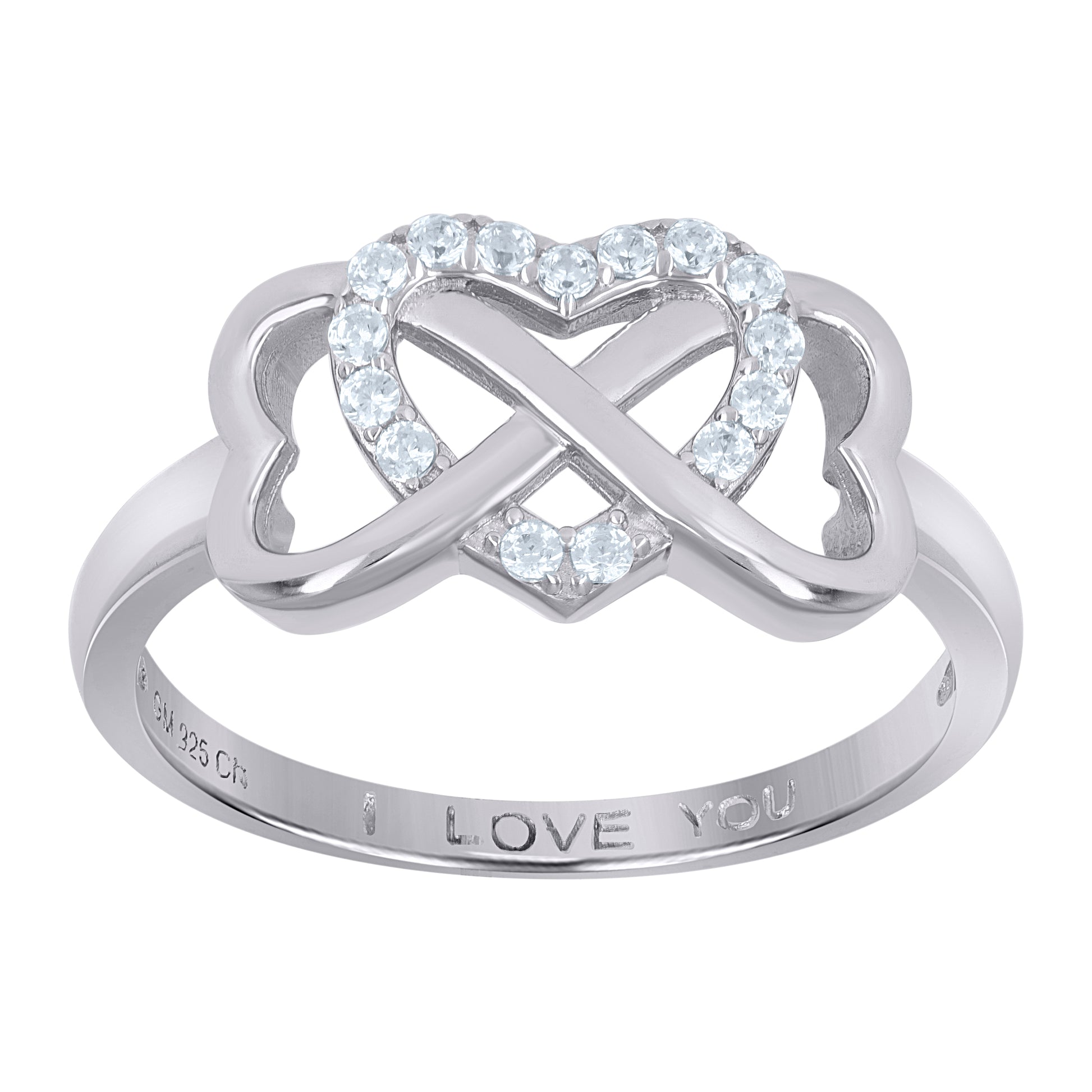 Sterling Silver Womens Cubic Zirconia Infinity Hearts Bridal Anniversary Wedding Engagement Band Ring