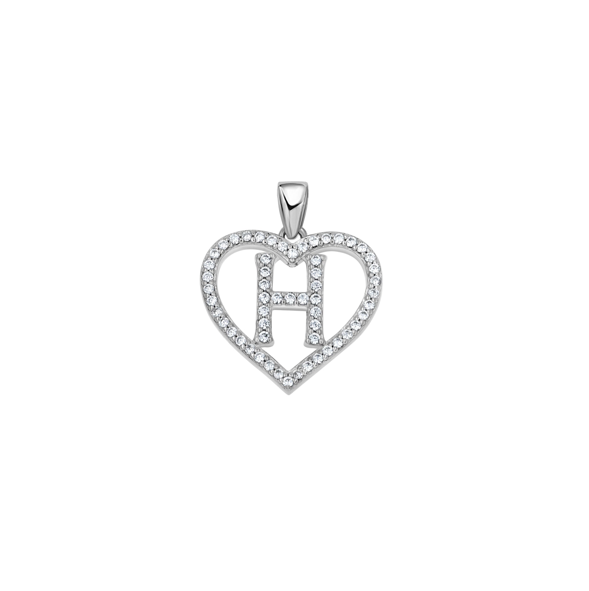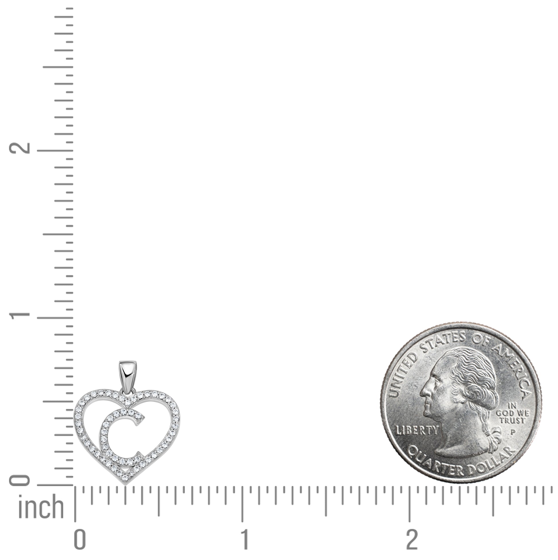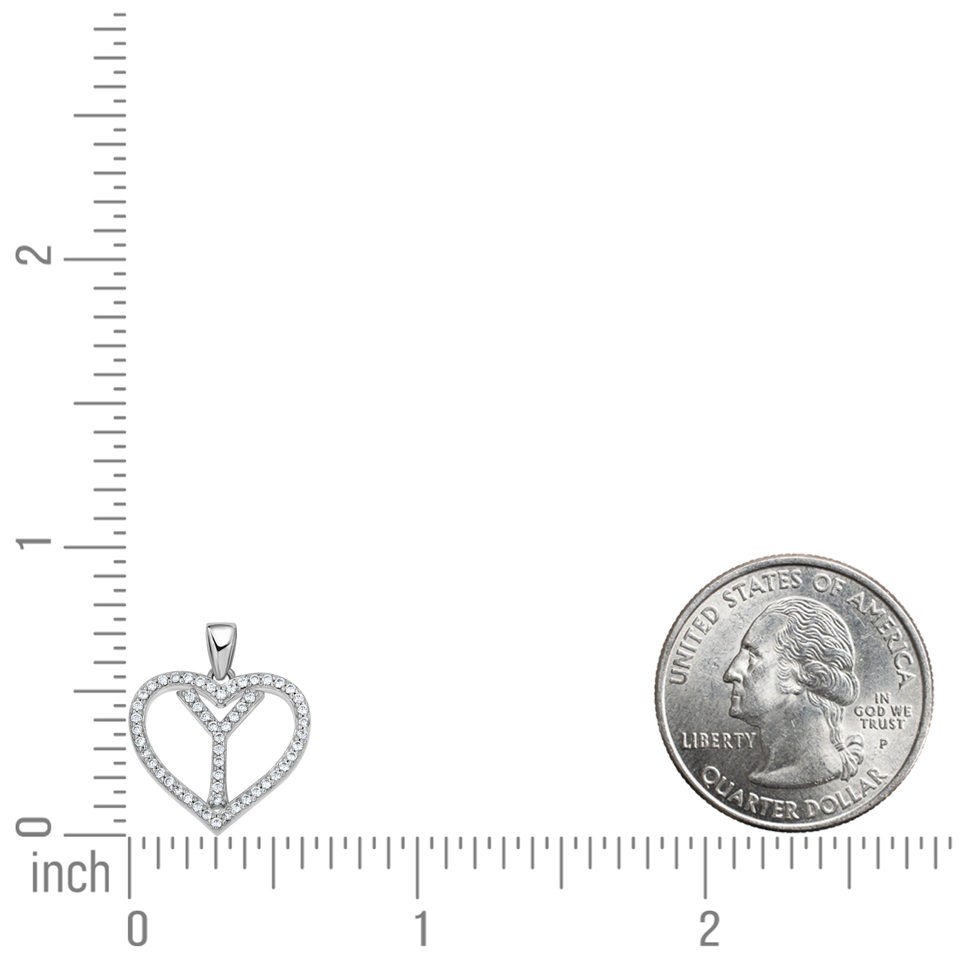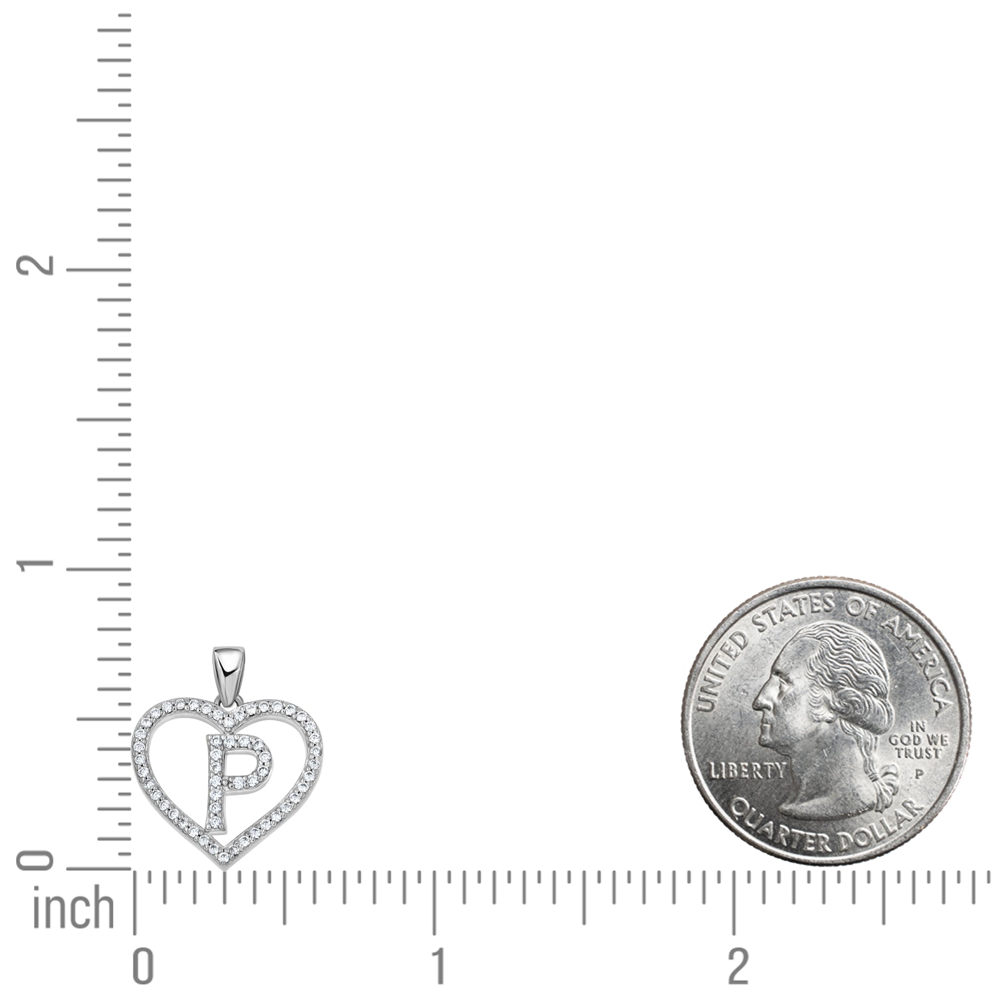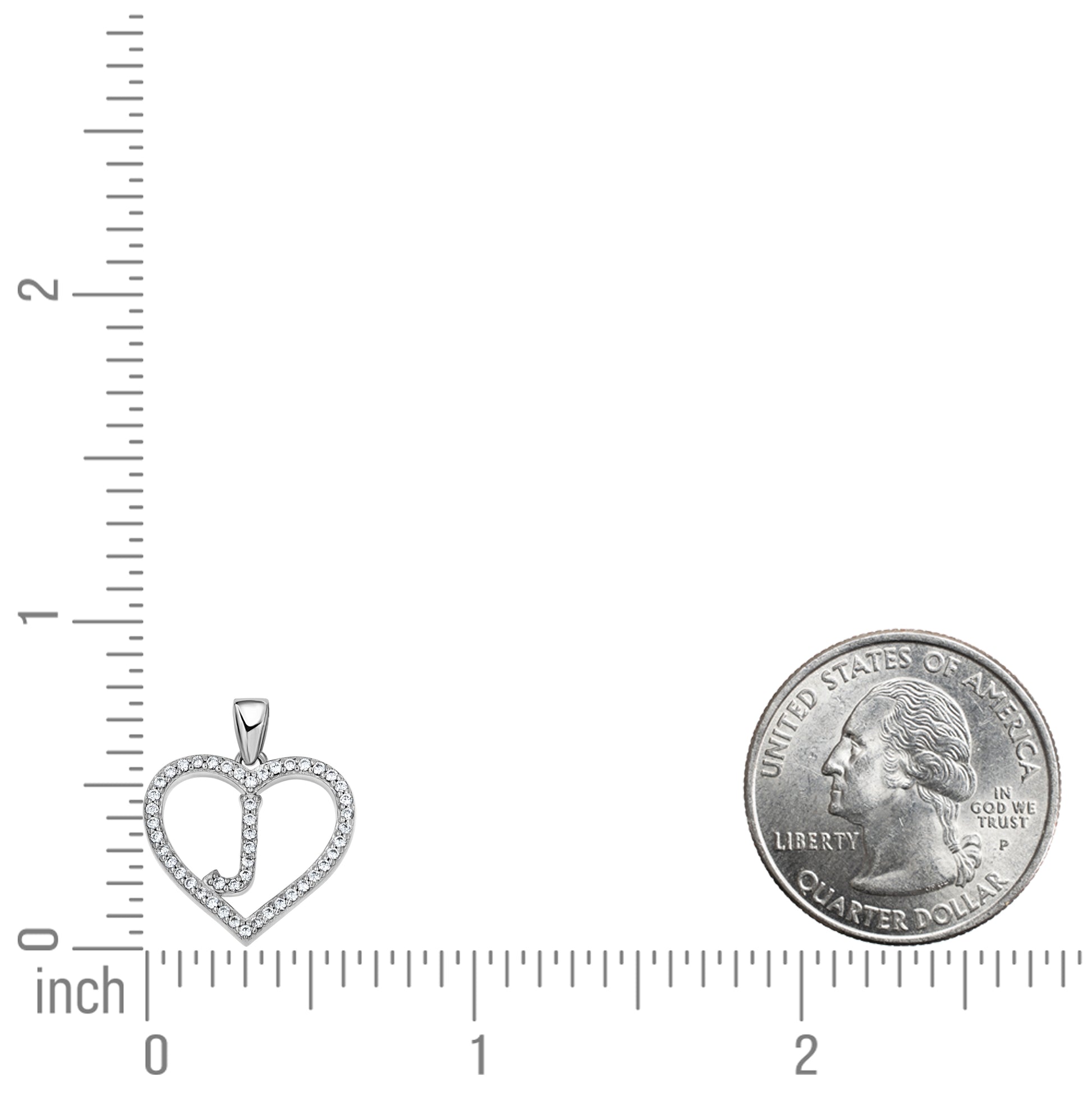 Sterling Silver Womens Cubic Zirconia Initial Letter Heart Charm Pendant