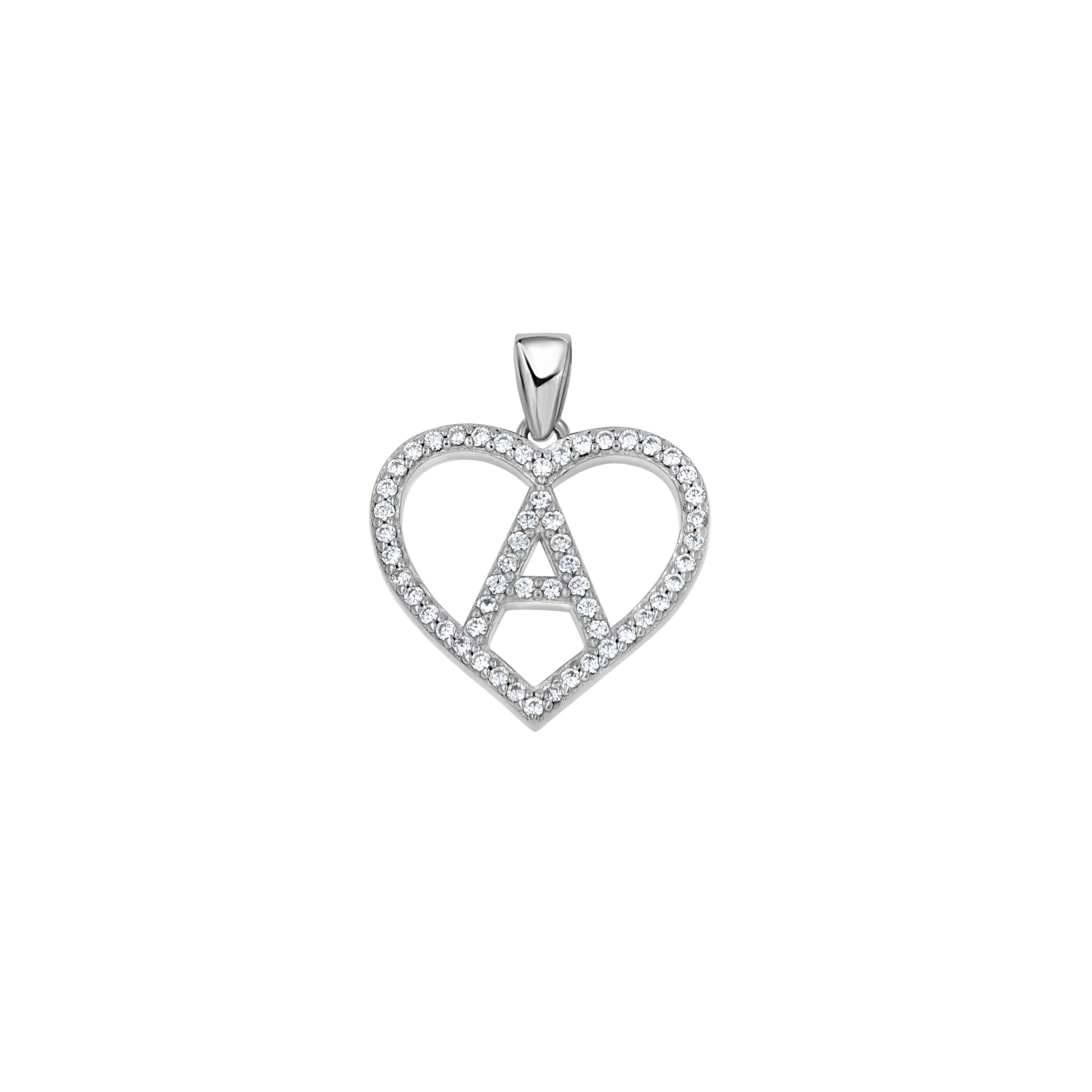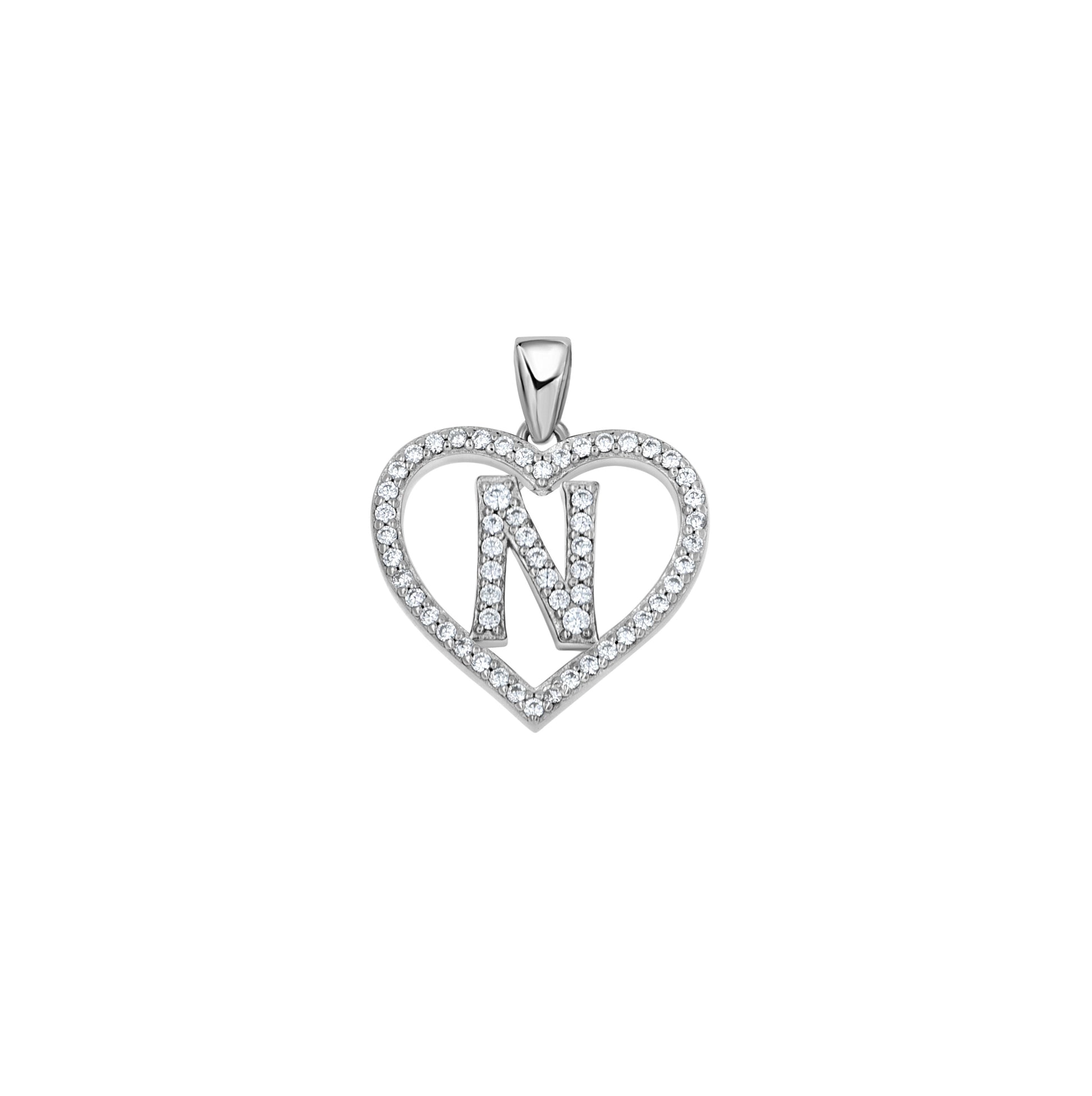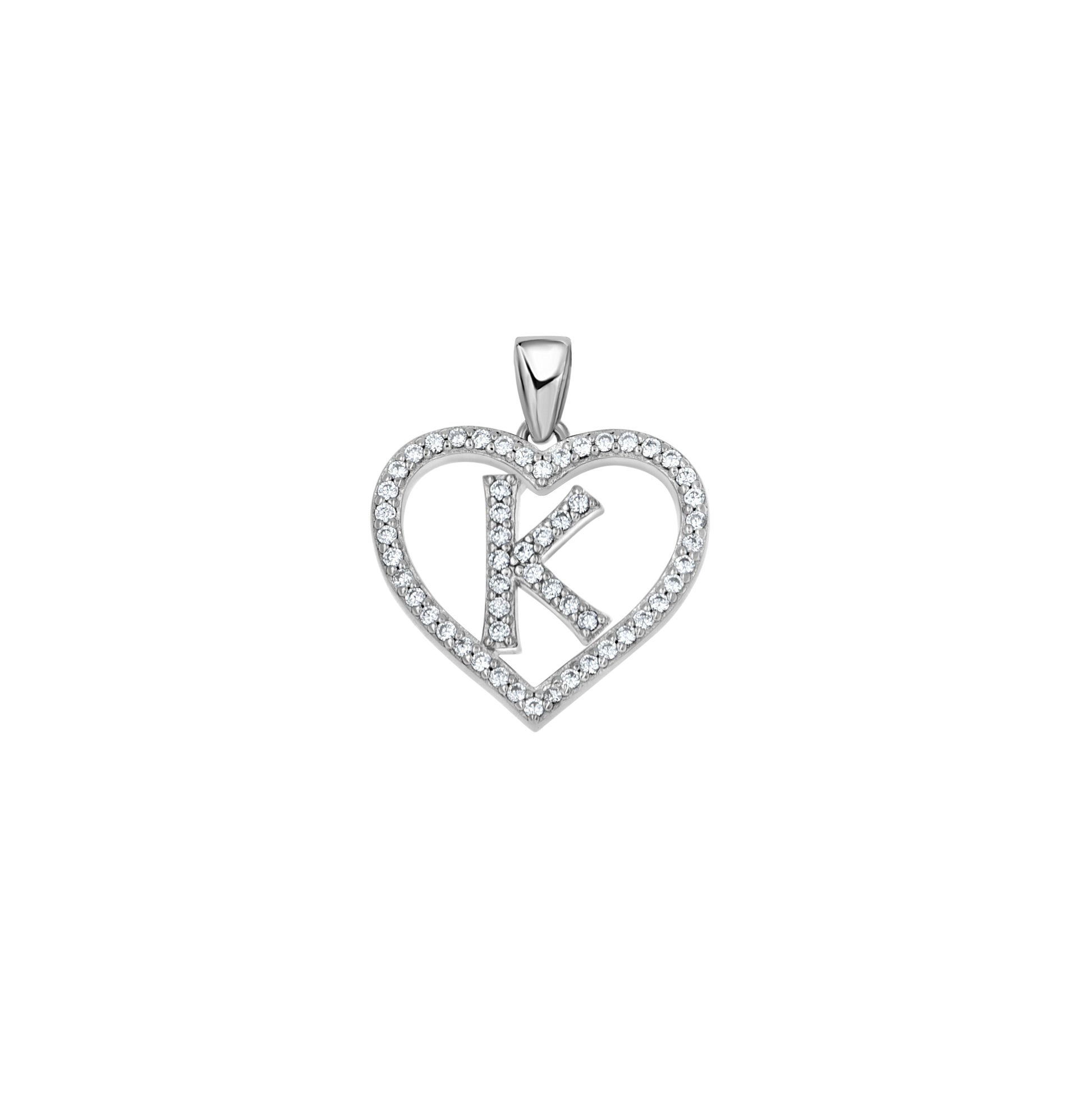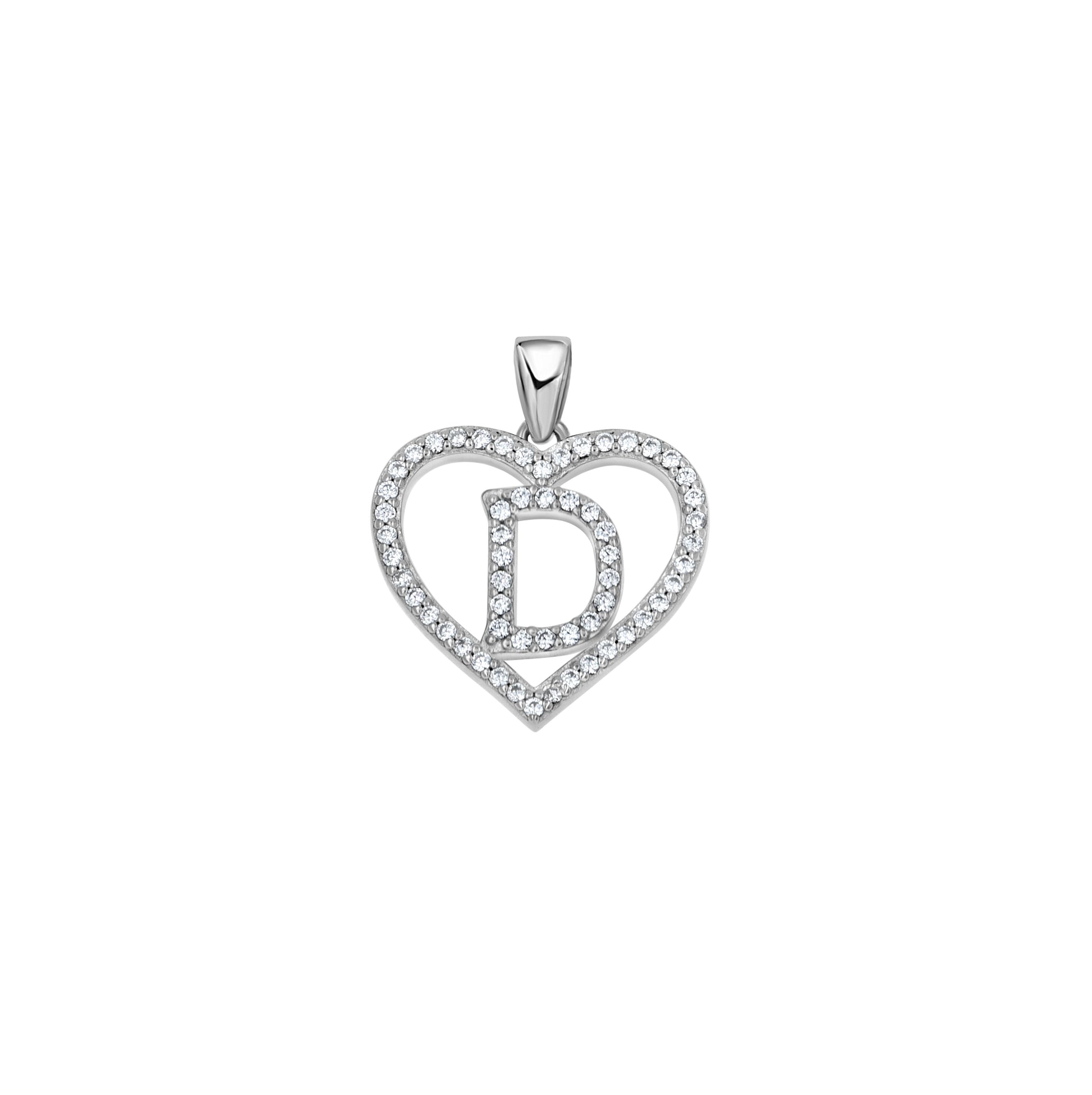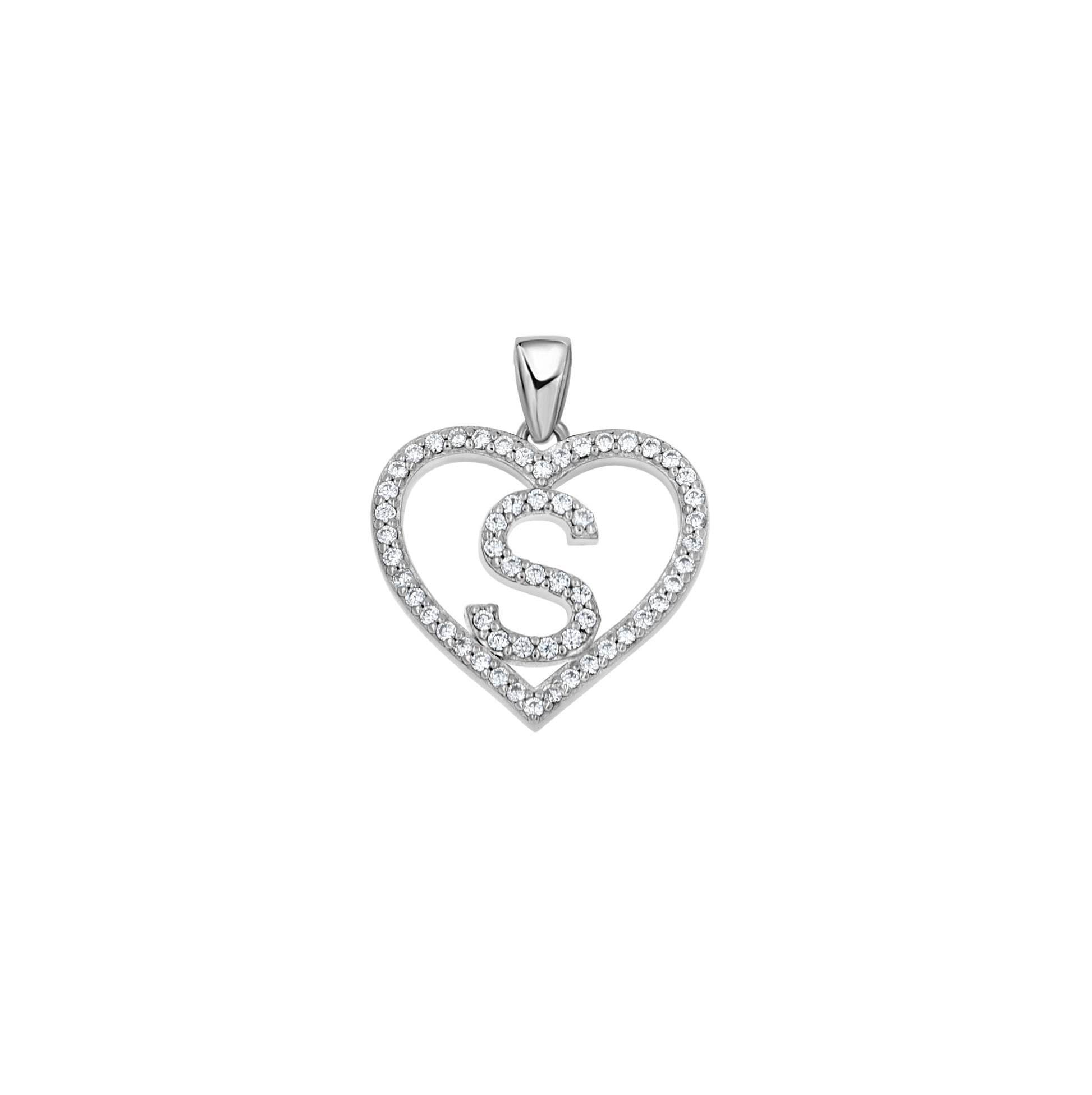 Sterling Silver Womens Cubic Zirconia Initial Letter Heart Charm Pendant