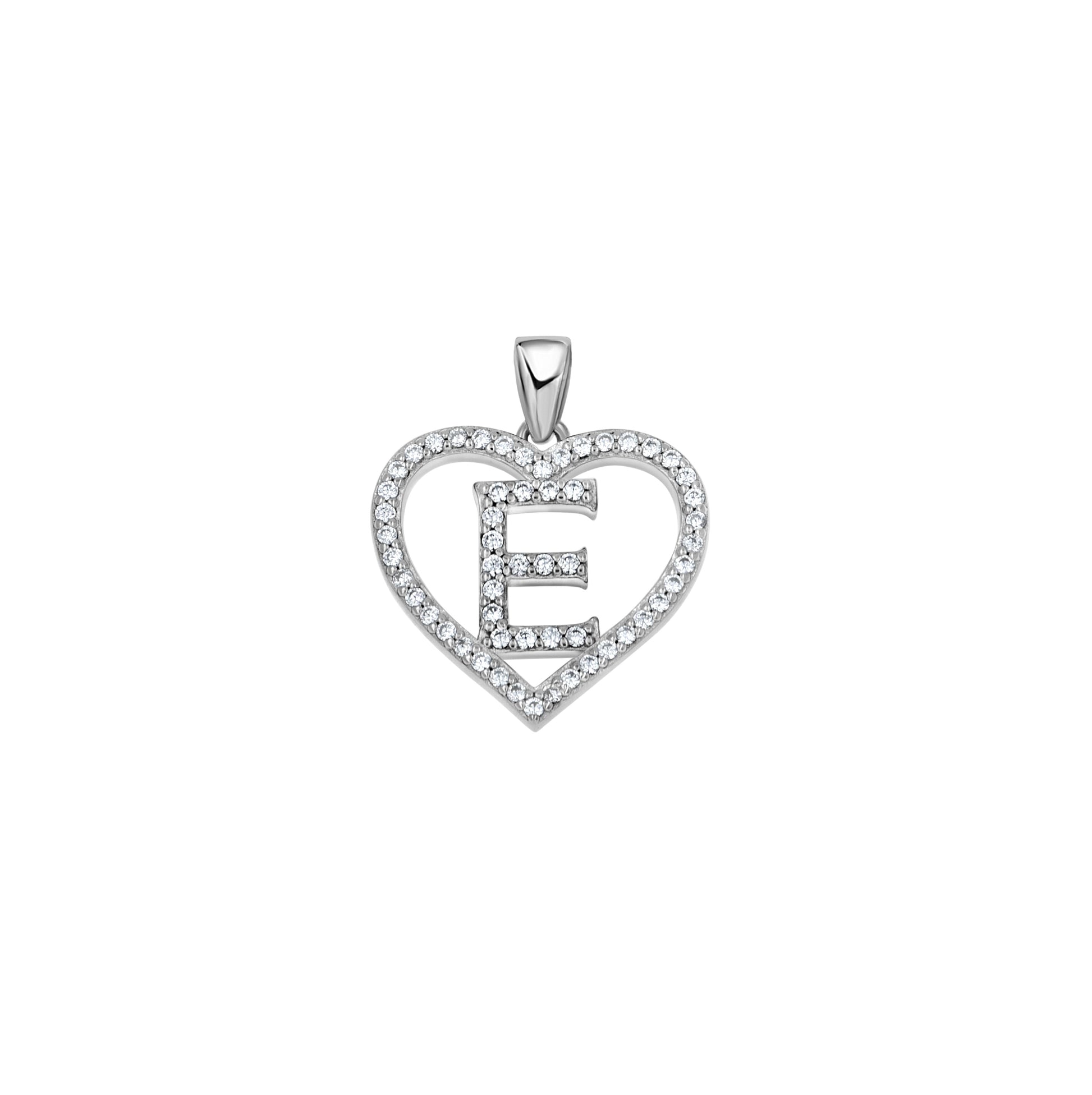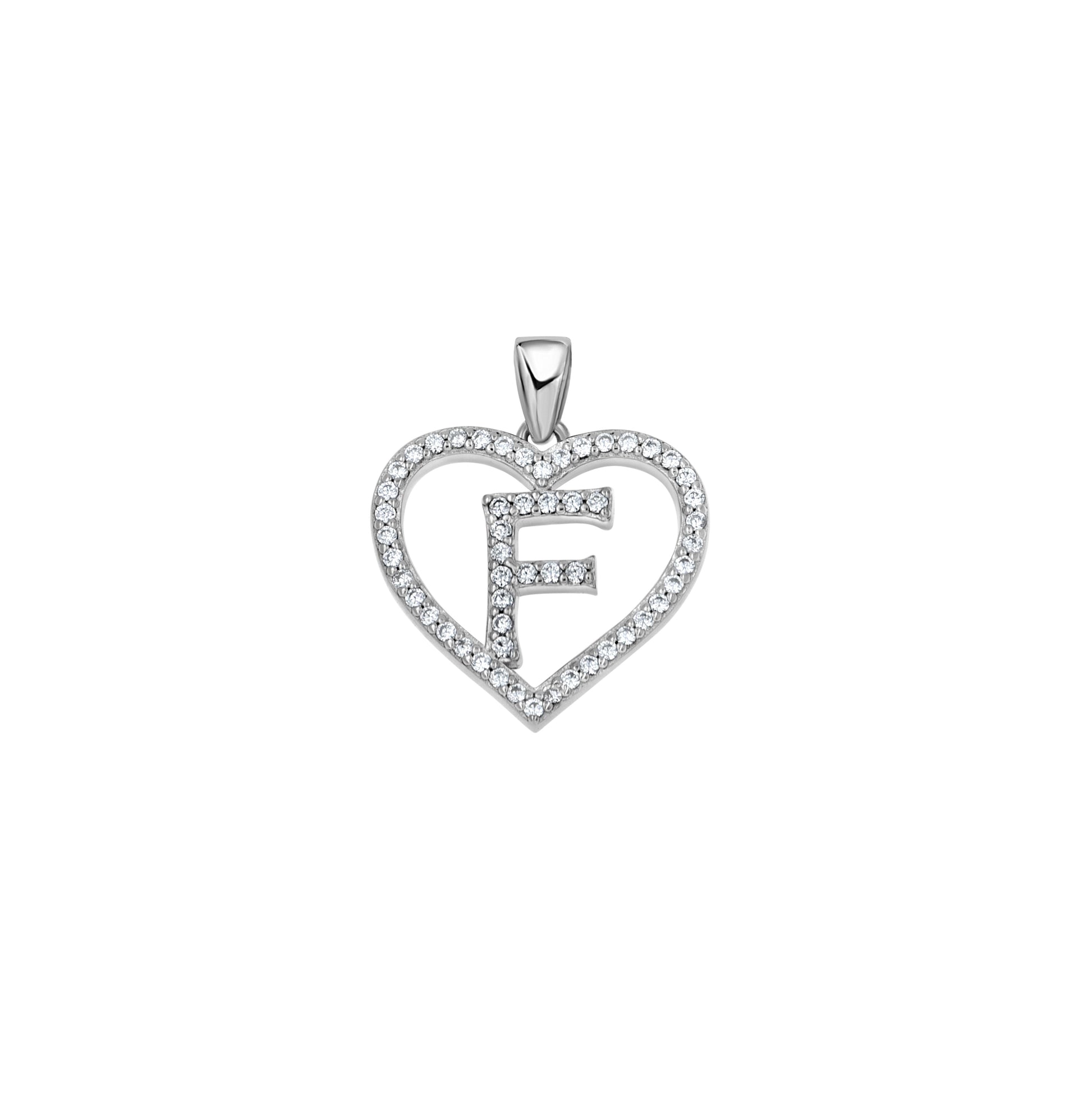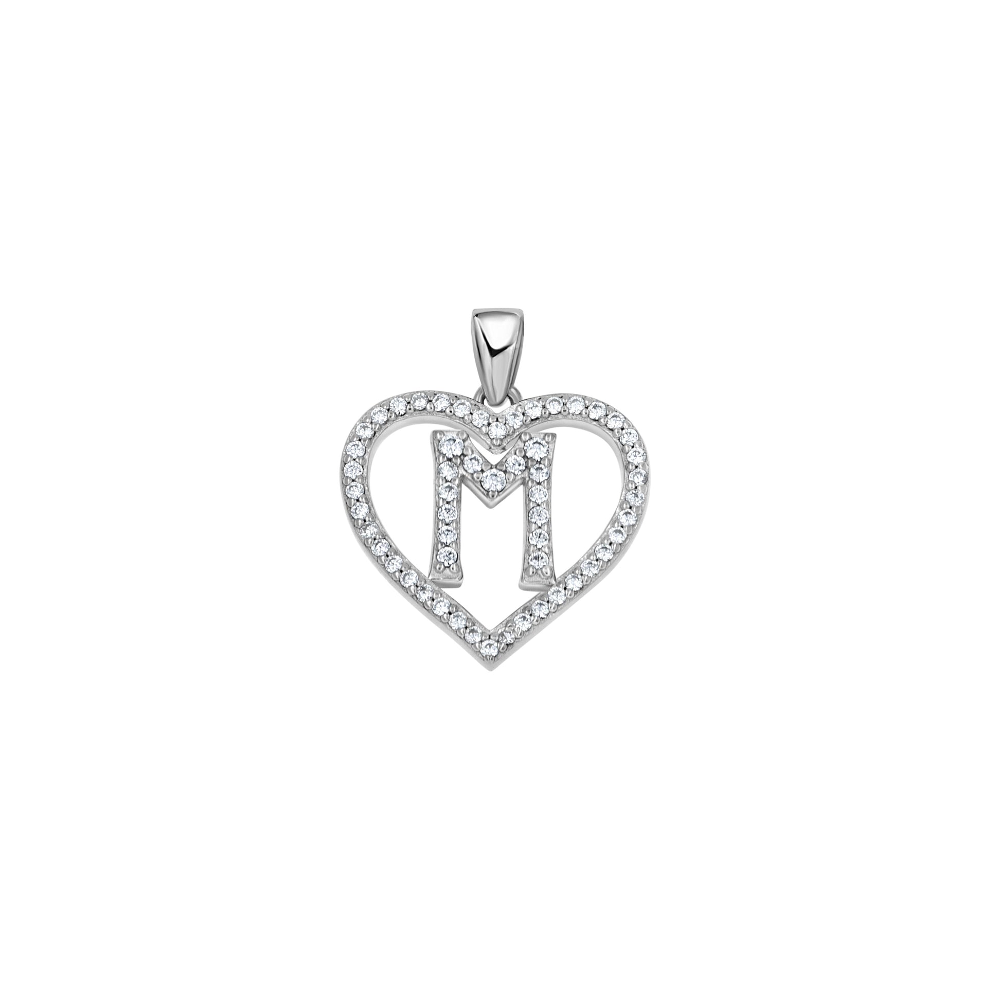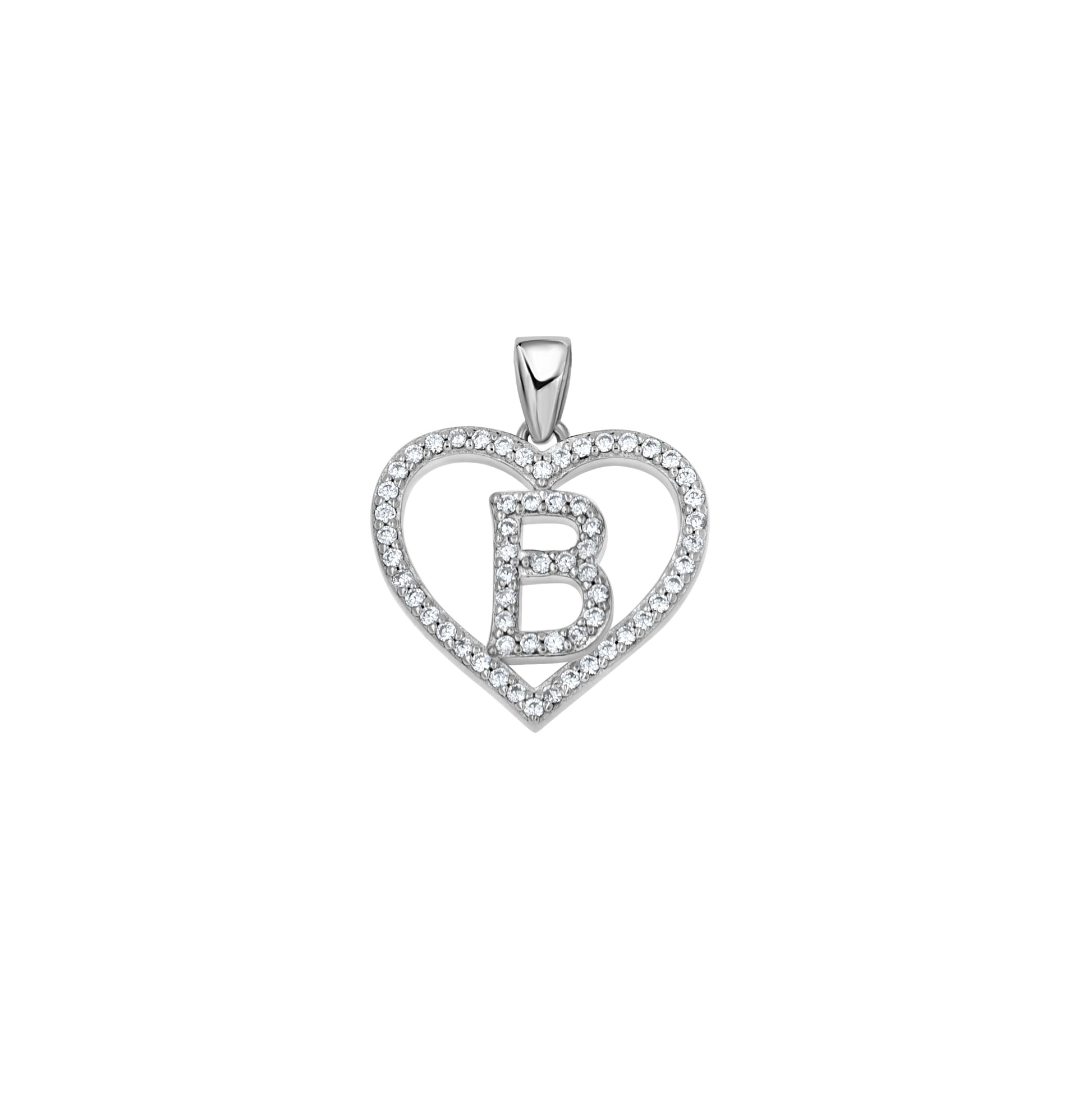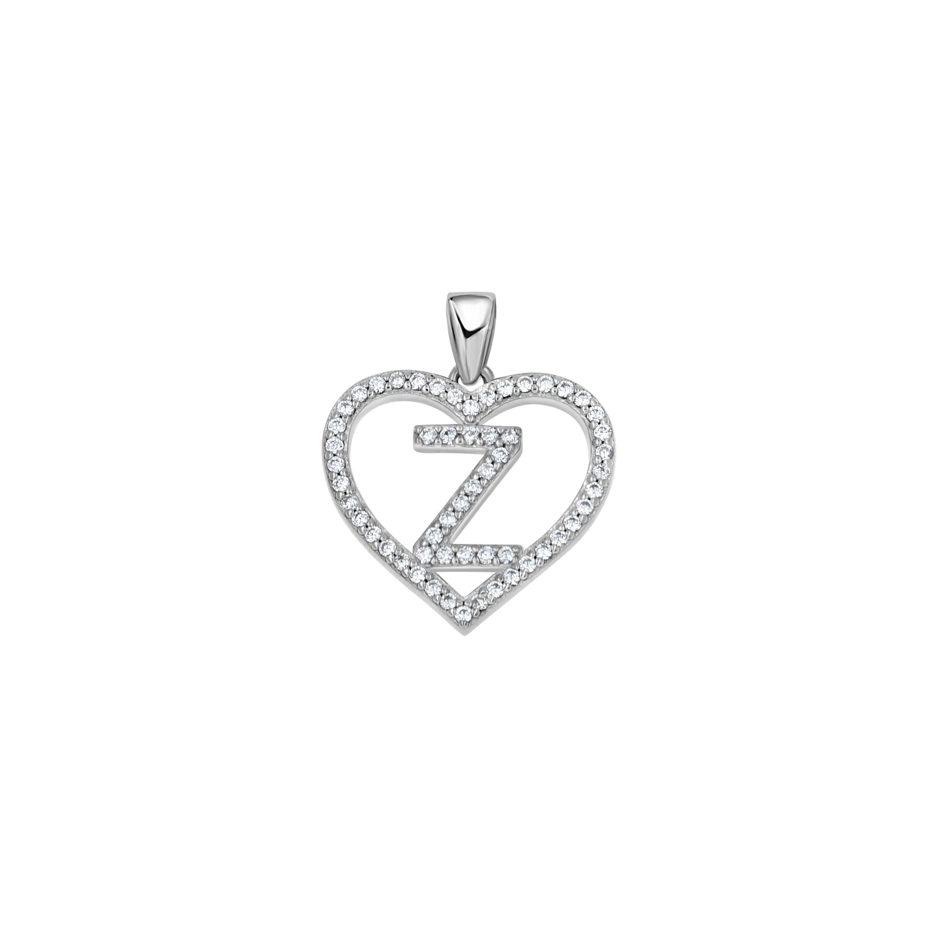 Sterling Silver Womens Cubic Zirconia Initial Letter Heart Charm Pendant