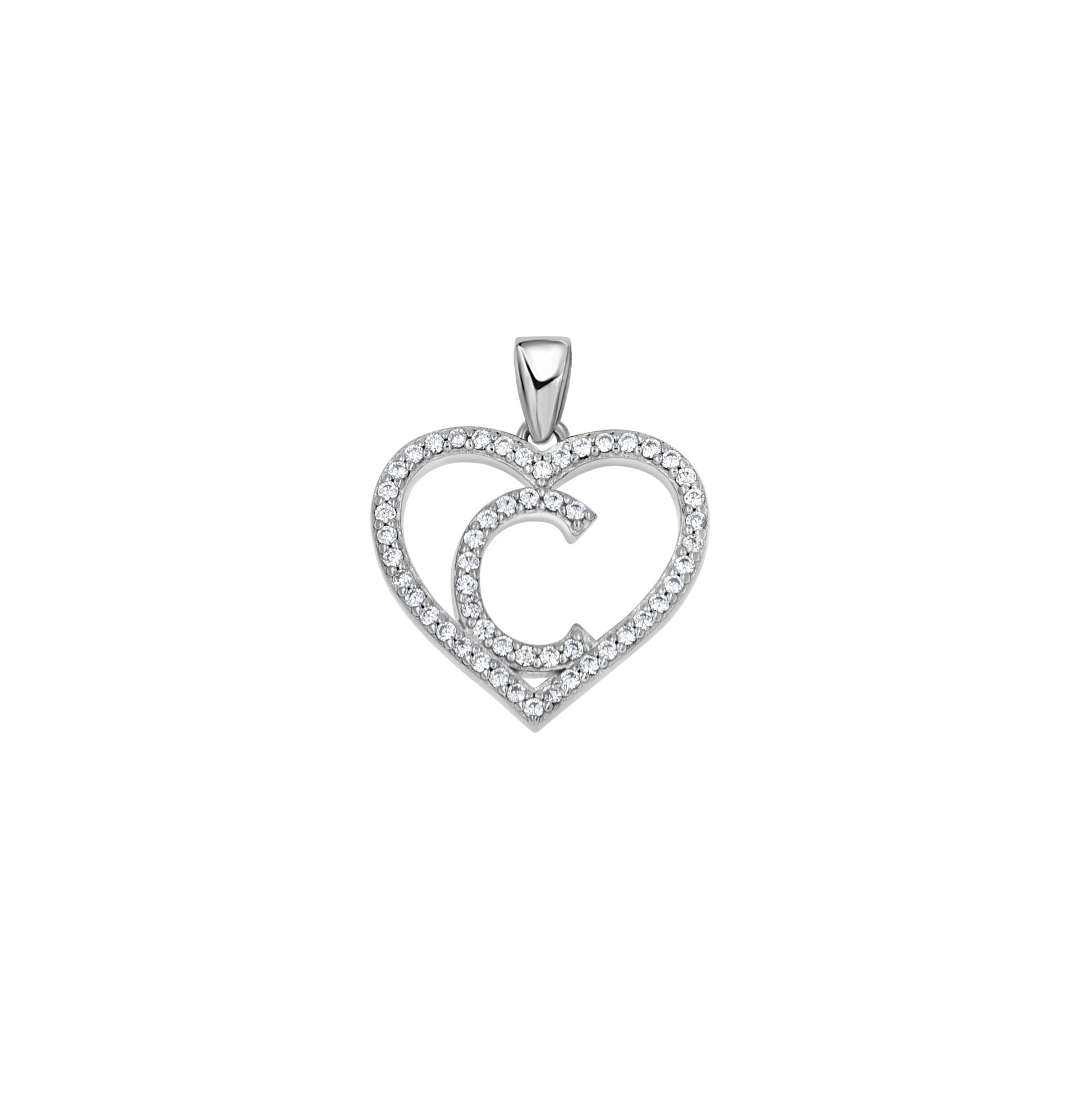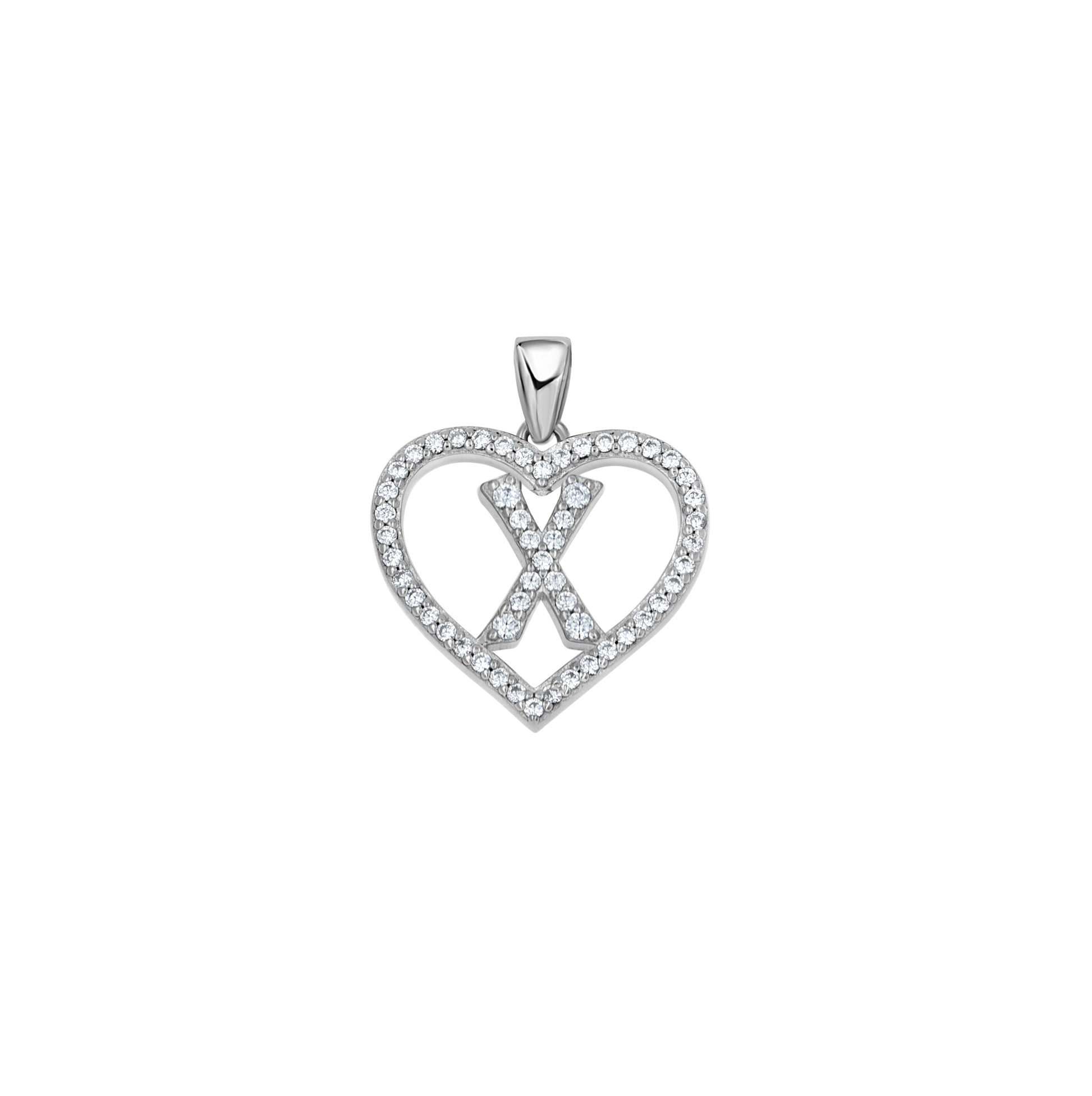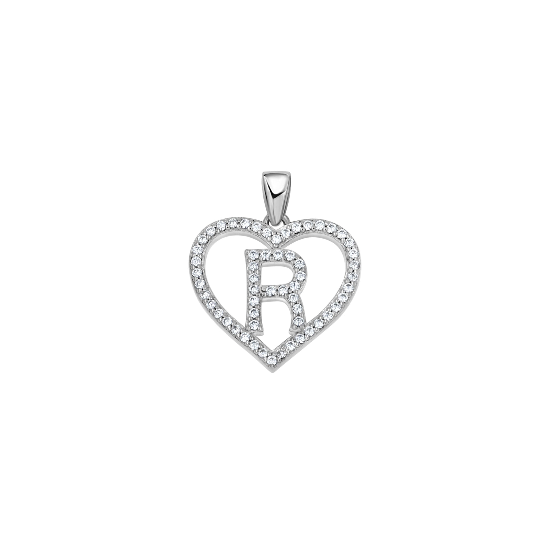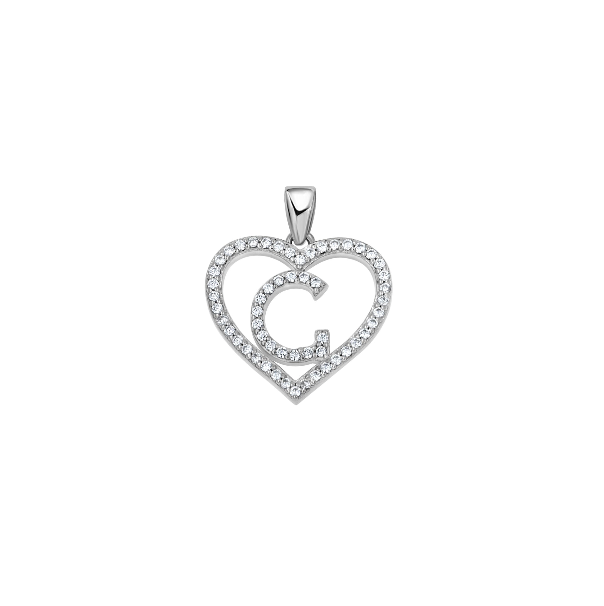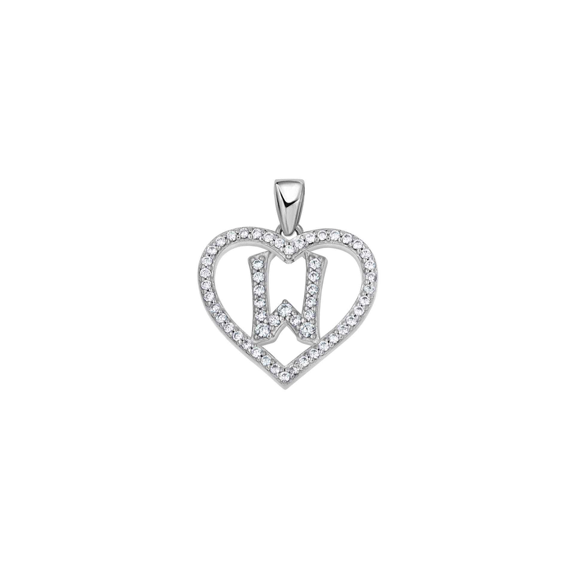 Sterling Silver Womens Cubic Zirconia Initial Letter Heart Charm Pendant
