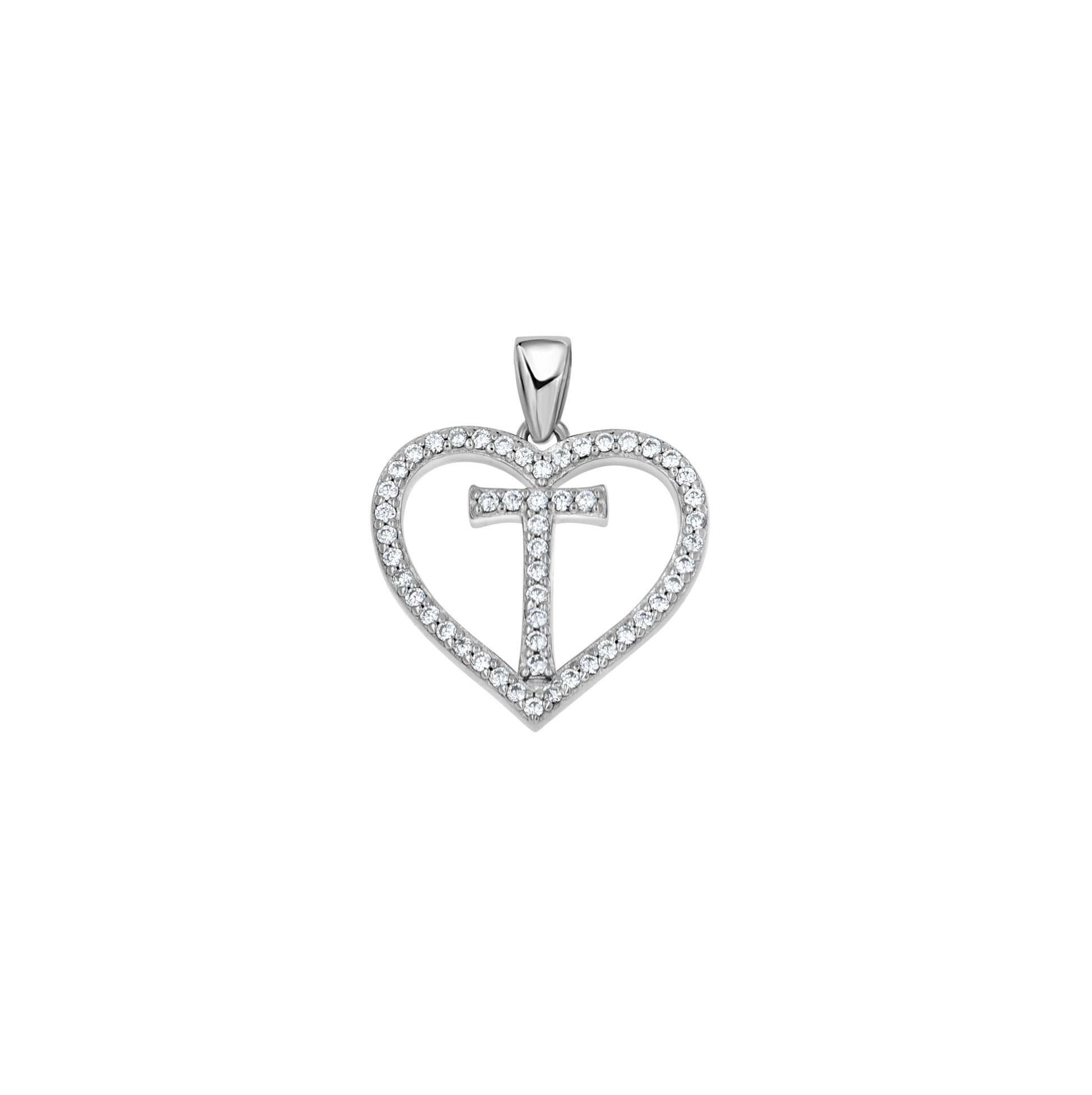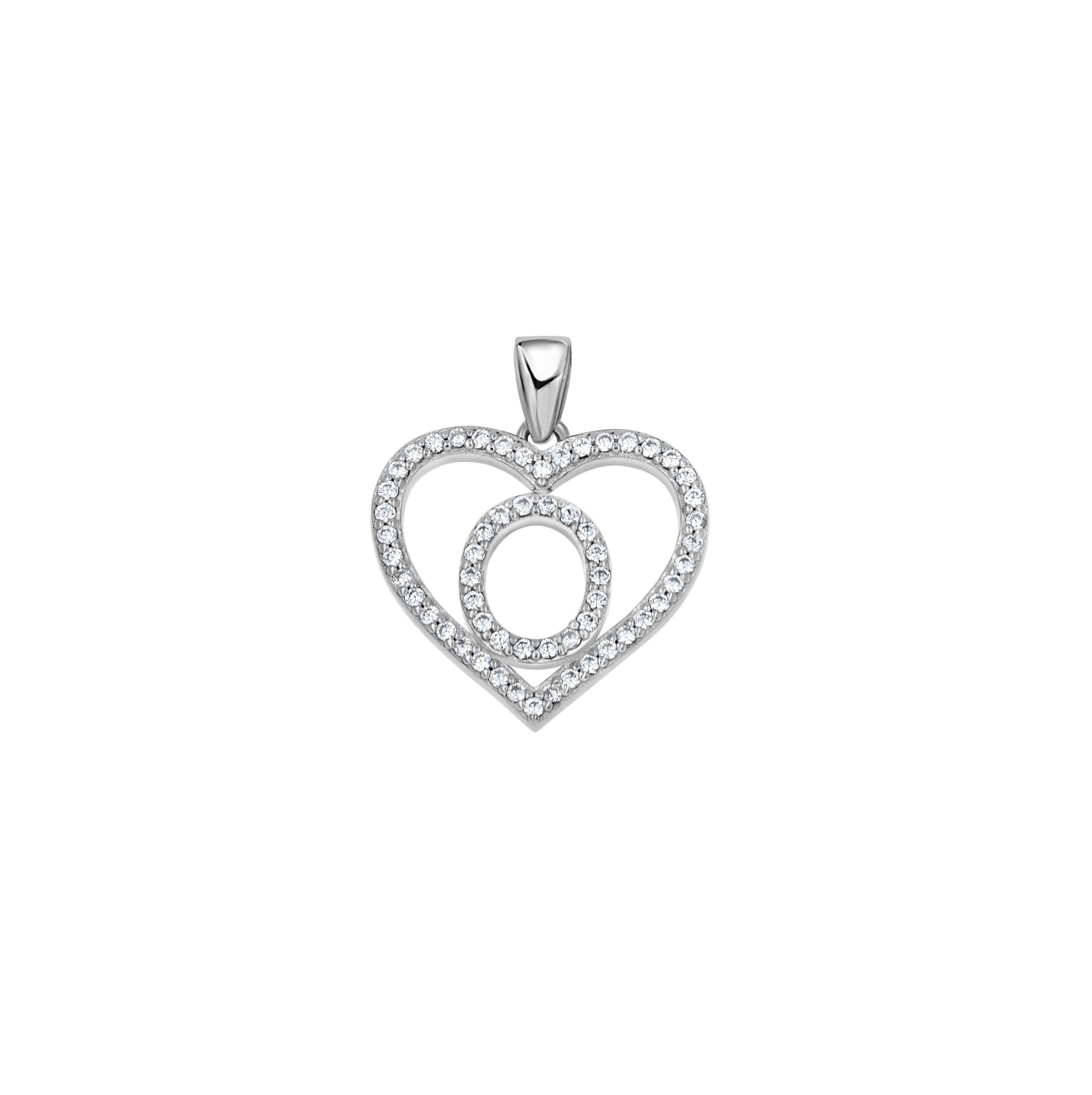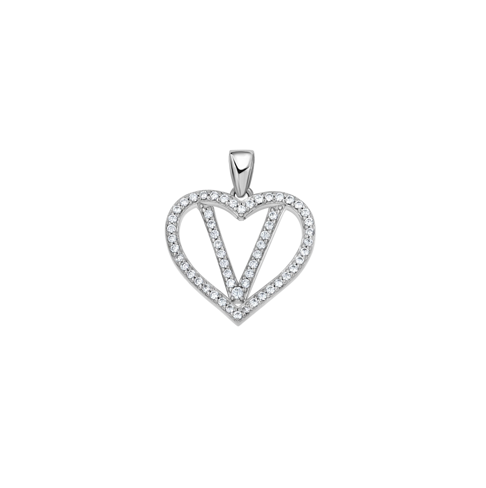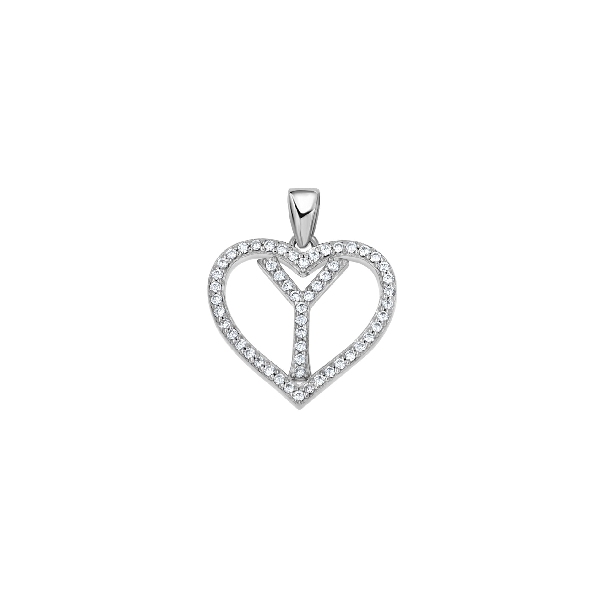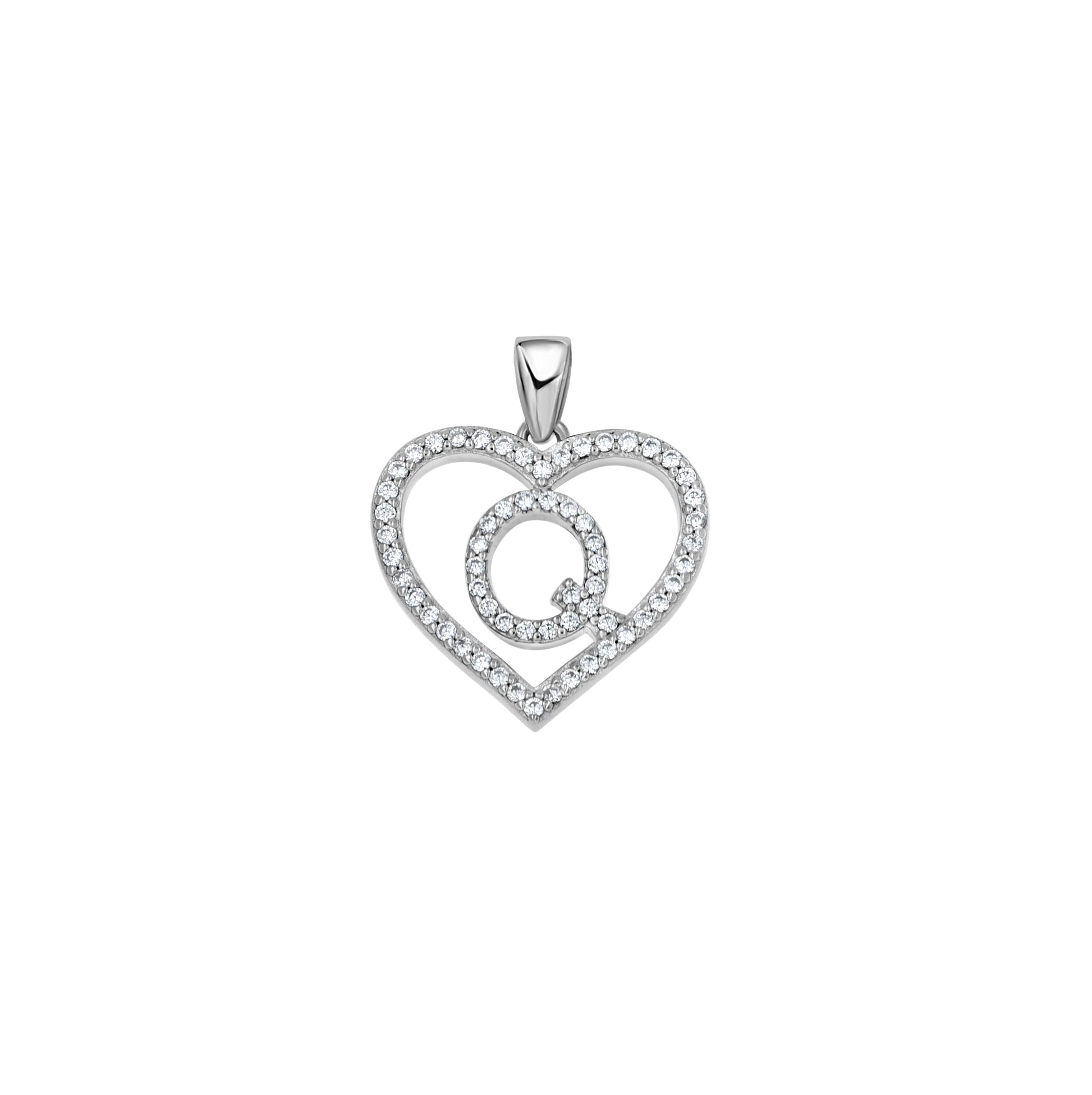 Sterling Silver Womens Cubic Zirconia Initial Letter Heart Charm Pendant