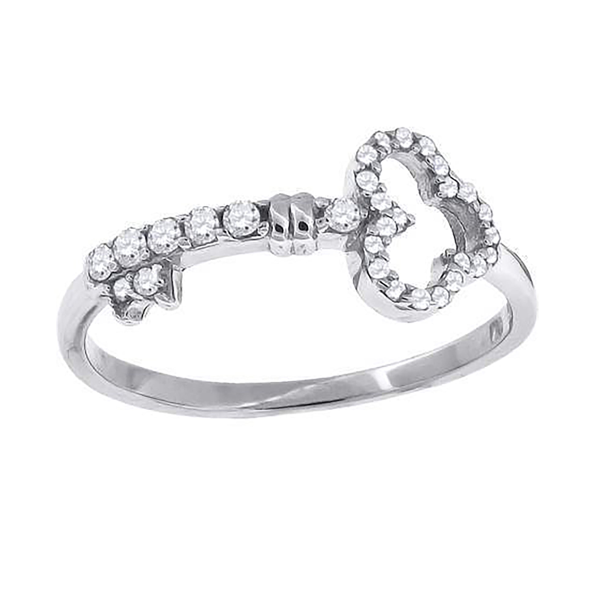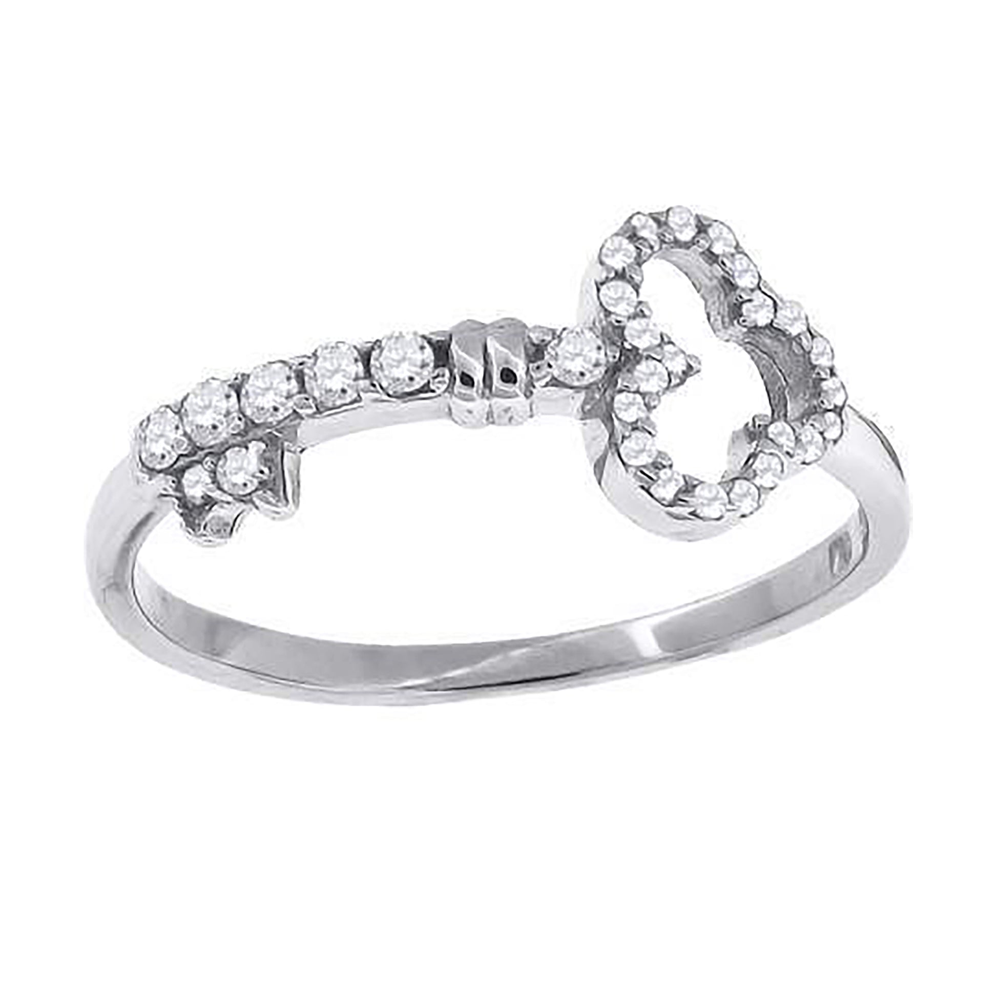 Sterling Silver Womens Cubic Zirconia Key Bridal Anniversary Wedding Engagement Band Ring