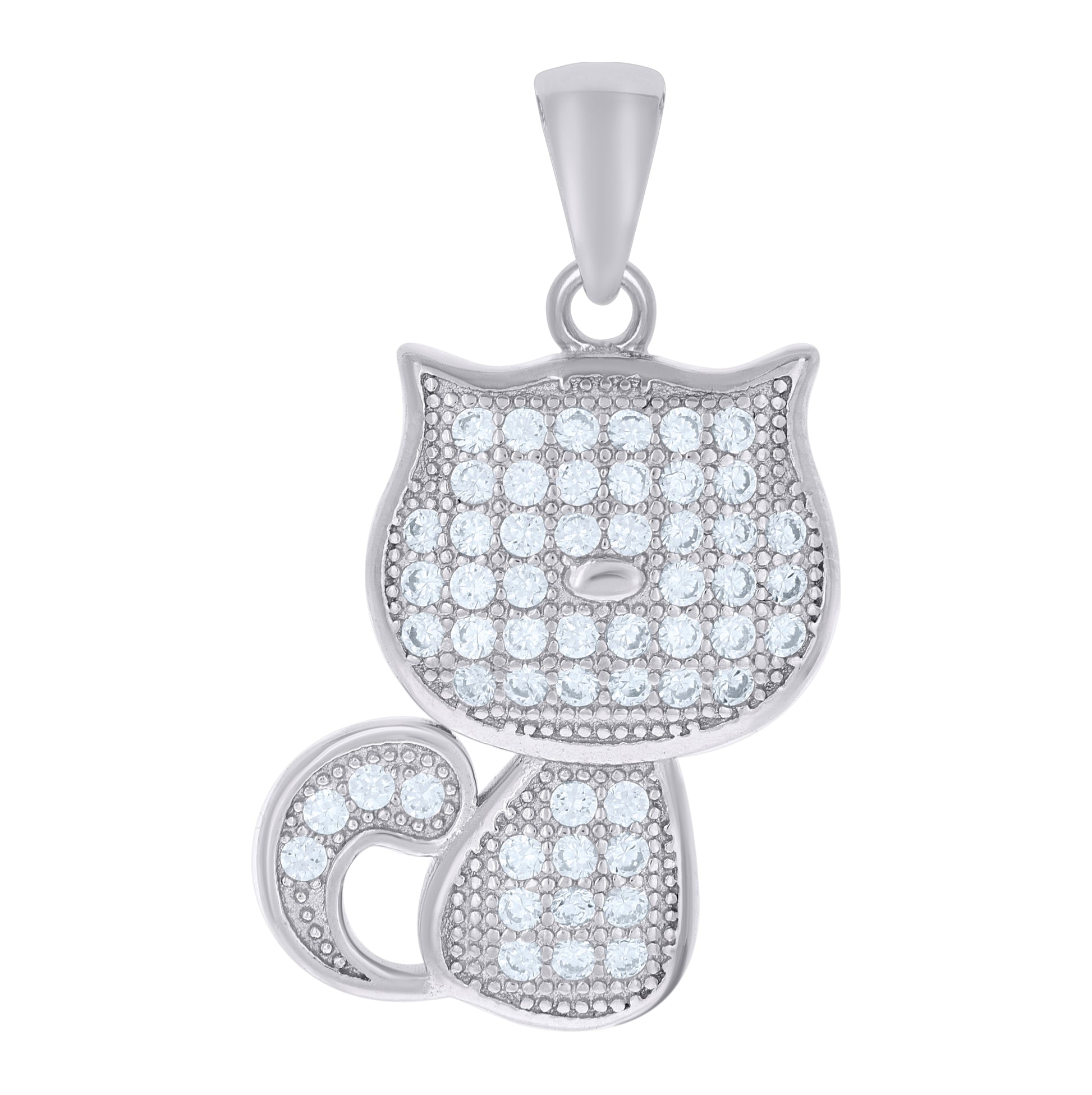 Sterling Silver Womens Cubic-Zirconia Kitty Cat Animal Charm Pendant