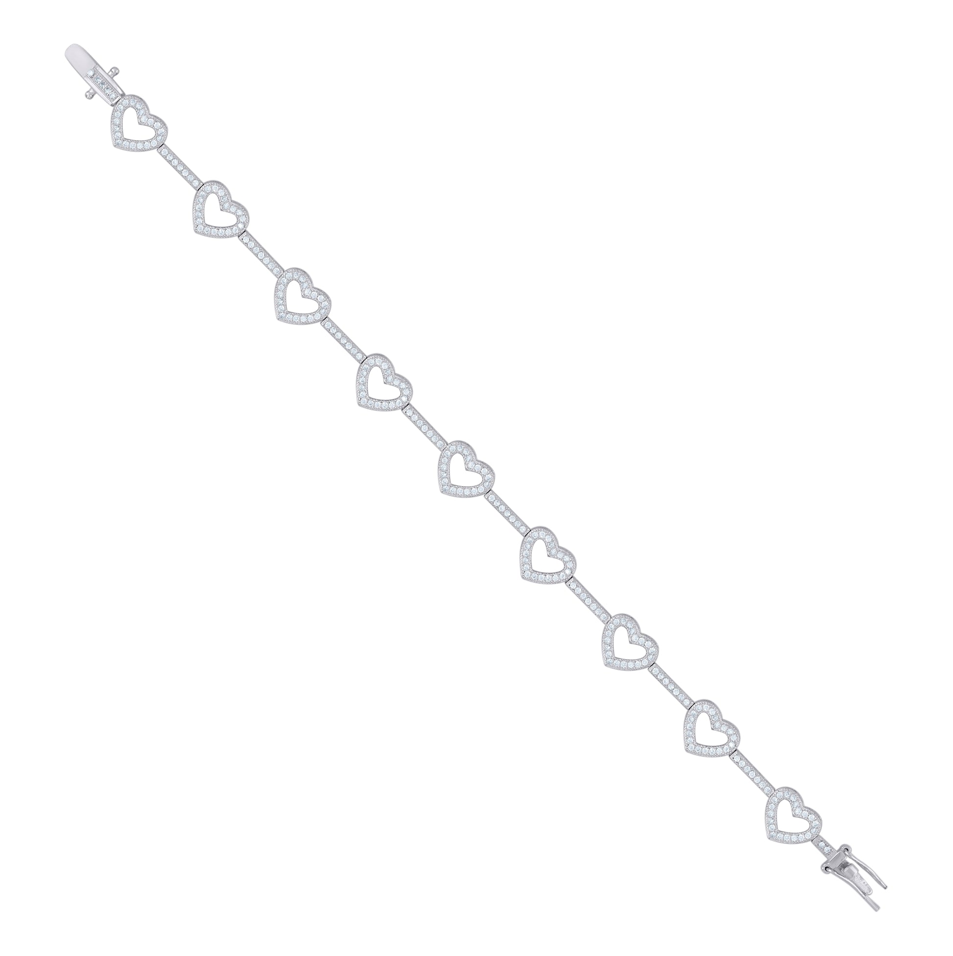 Sterling Silver Womens Cubic Zirconia Link Heart Bracelet