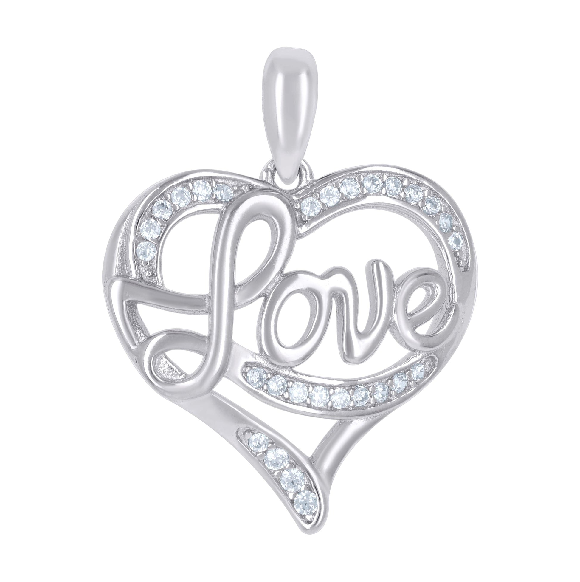 Sterling Silver Womens Cubic-Zirconia Love Heart Charm Pendant