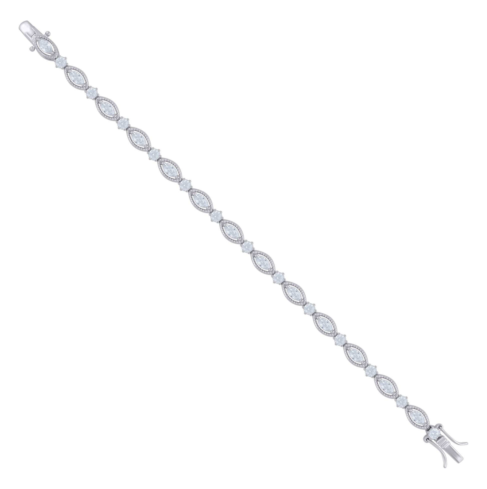 Sterling Silver Womens Cubic Zirconia Marquise Cut White Stone Bracelet
