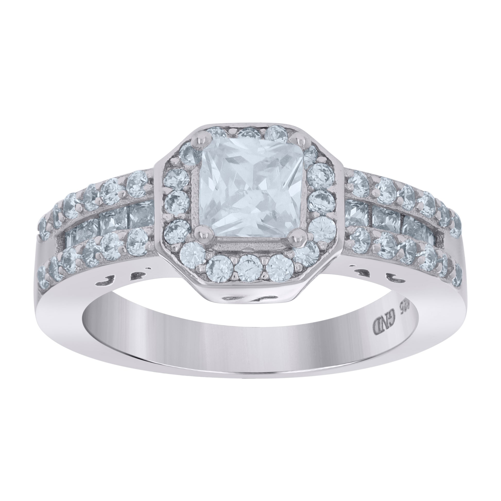 Sterling Silver Womens Cubic Zirconia Octagon Head Bridal Anniversary Engagement Wedding Ring
