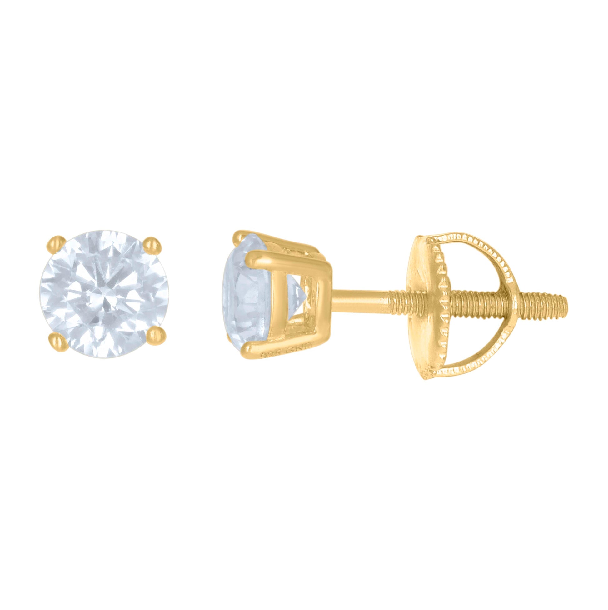 Sterling Silver Womens Cubic Zirconia Round Classic Studs Earrings