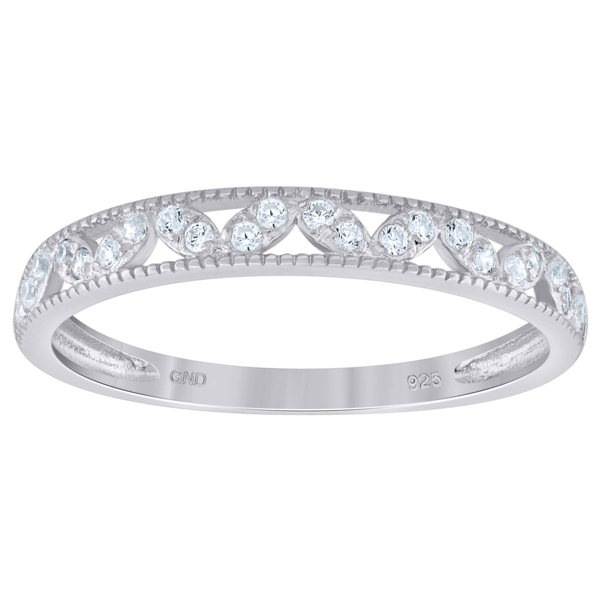 Sterling Silver Womens Cubic Zirconia Semi Eternity Stackable Bridal Anniversary Engagement Wedding Band Ring