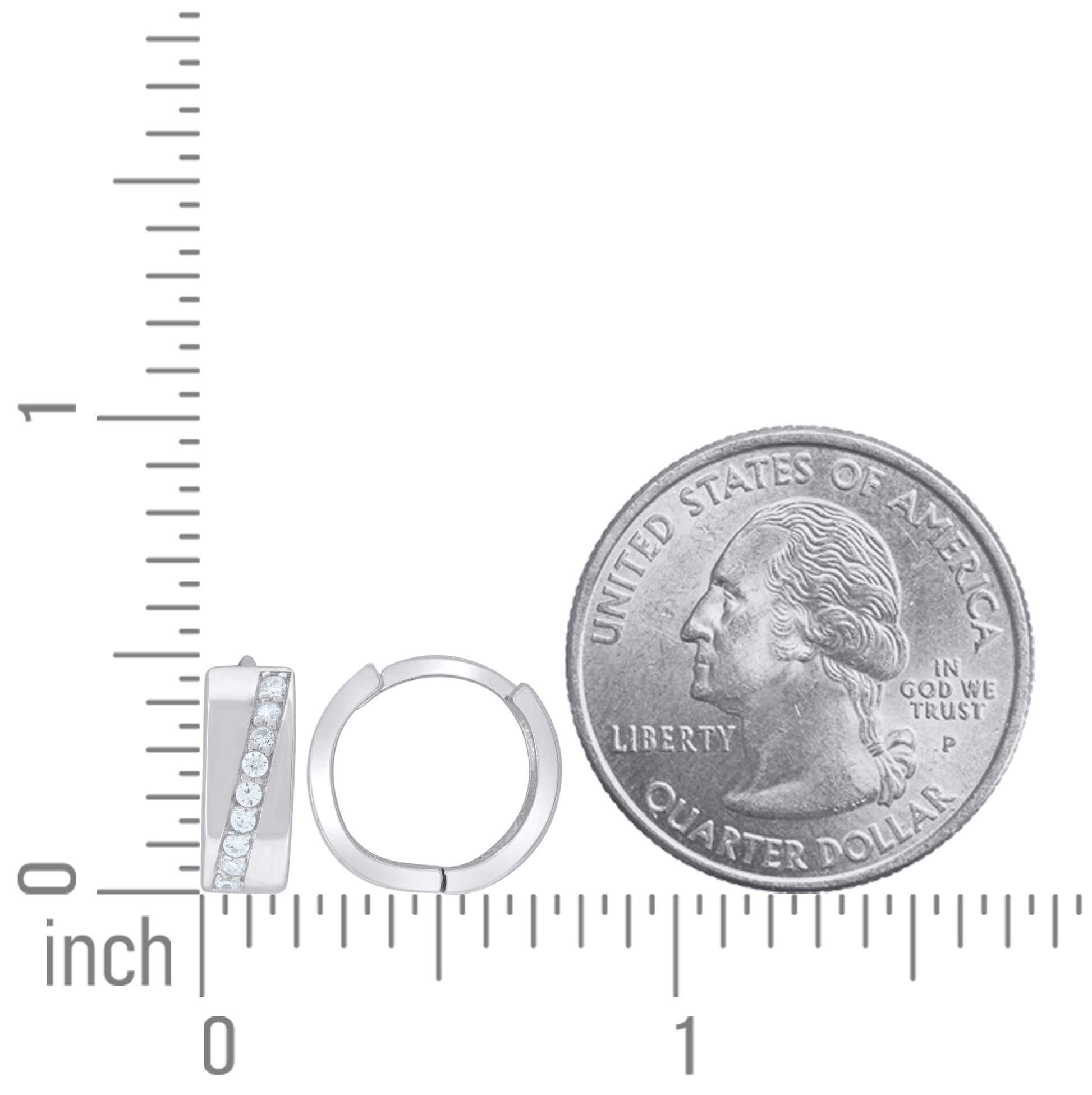 Sterling Silver Womens Cubic Zirconia Single Row Huggie Hoop Earrings