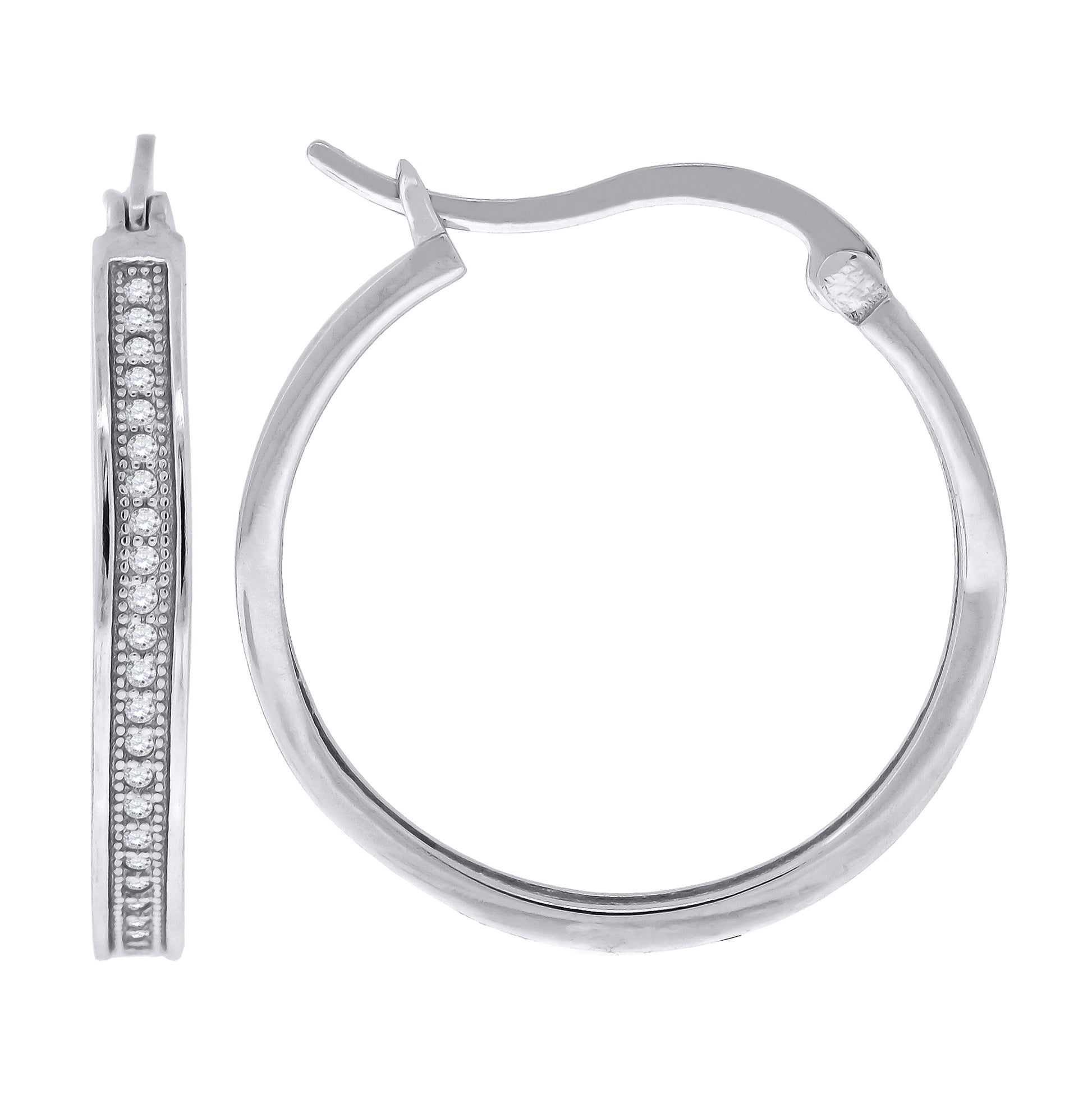 Sterling Silver Womens Cubic Zirconia Single Row Migraine Huggie Hoop Earrings