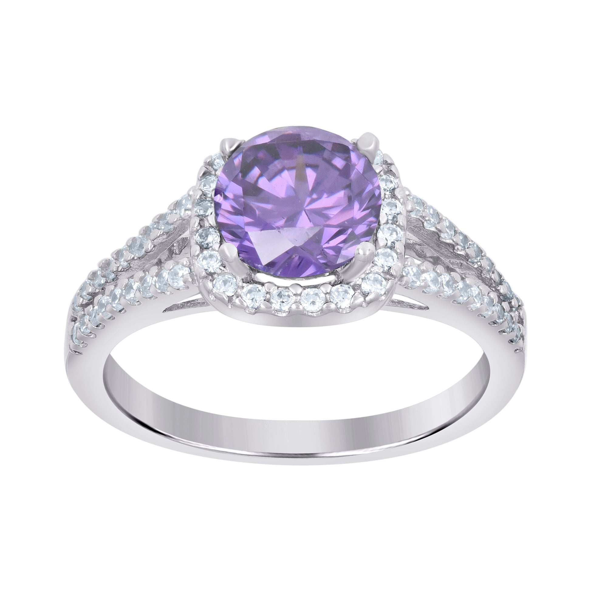 Sterling Silver Womens Cubic Zirconia Sizes 6-9 Purple Color Center Stone Bridal Anniversary Engagement WeddingBand Ring