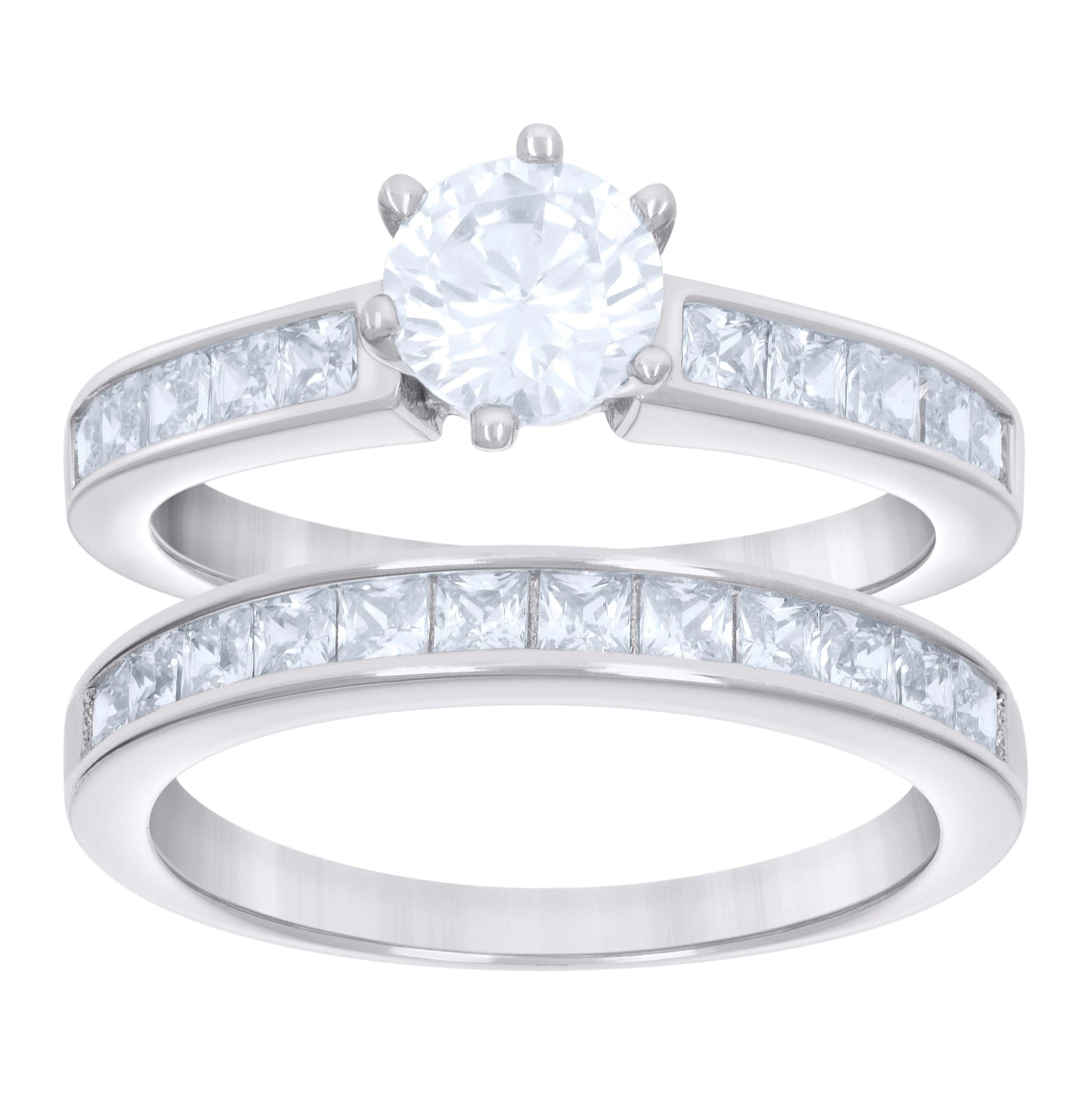 Sterling Silver Womens Cubic Zirconia Sizes 6-9 Round Center Stone Bridal Set Anniversary Engagement Wedding Band Ring