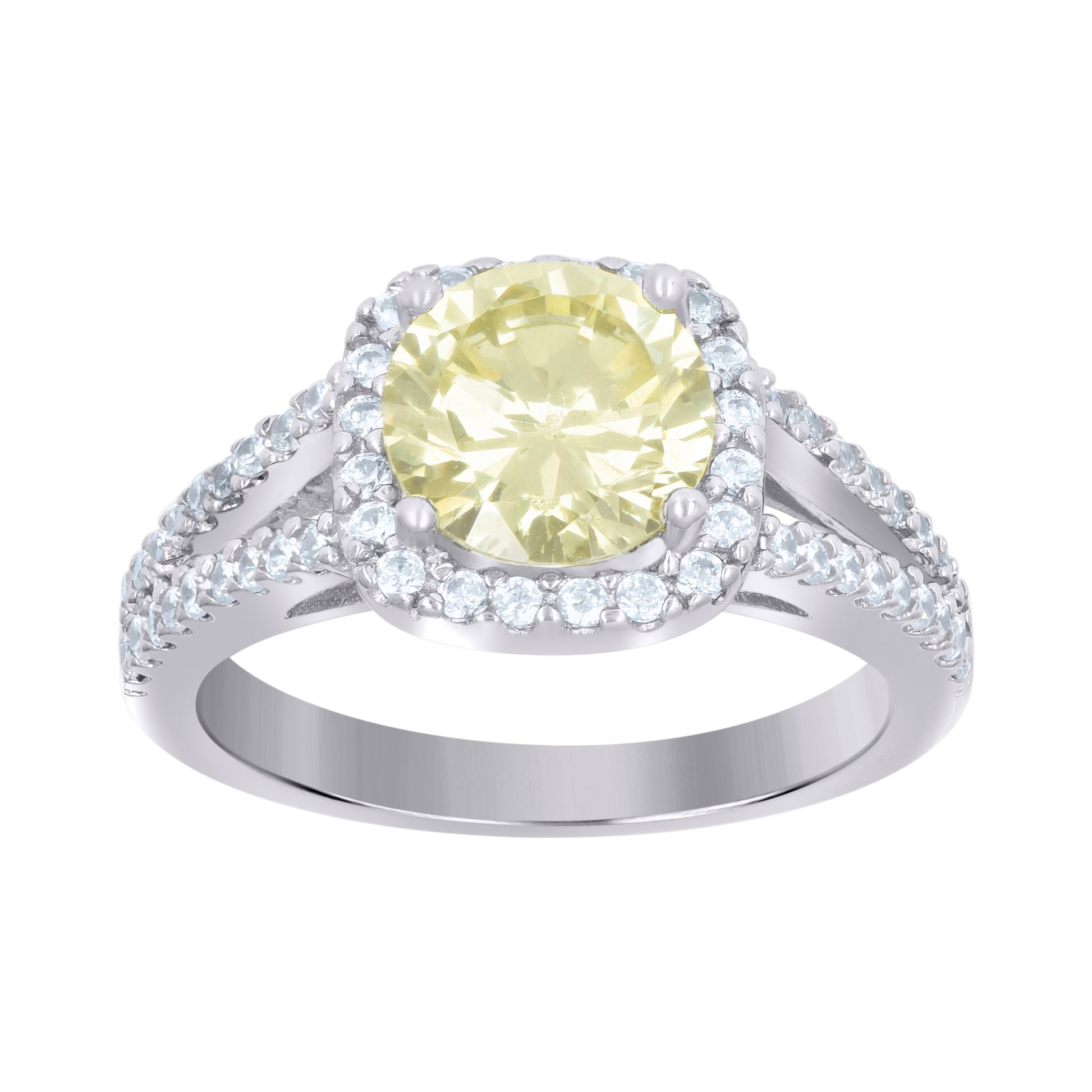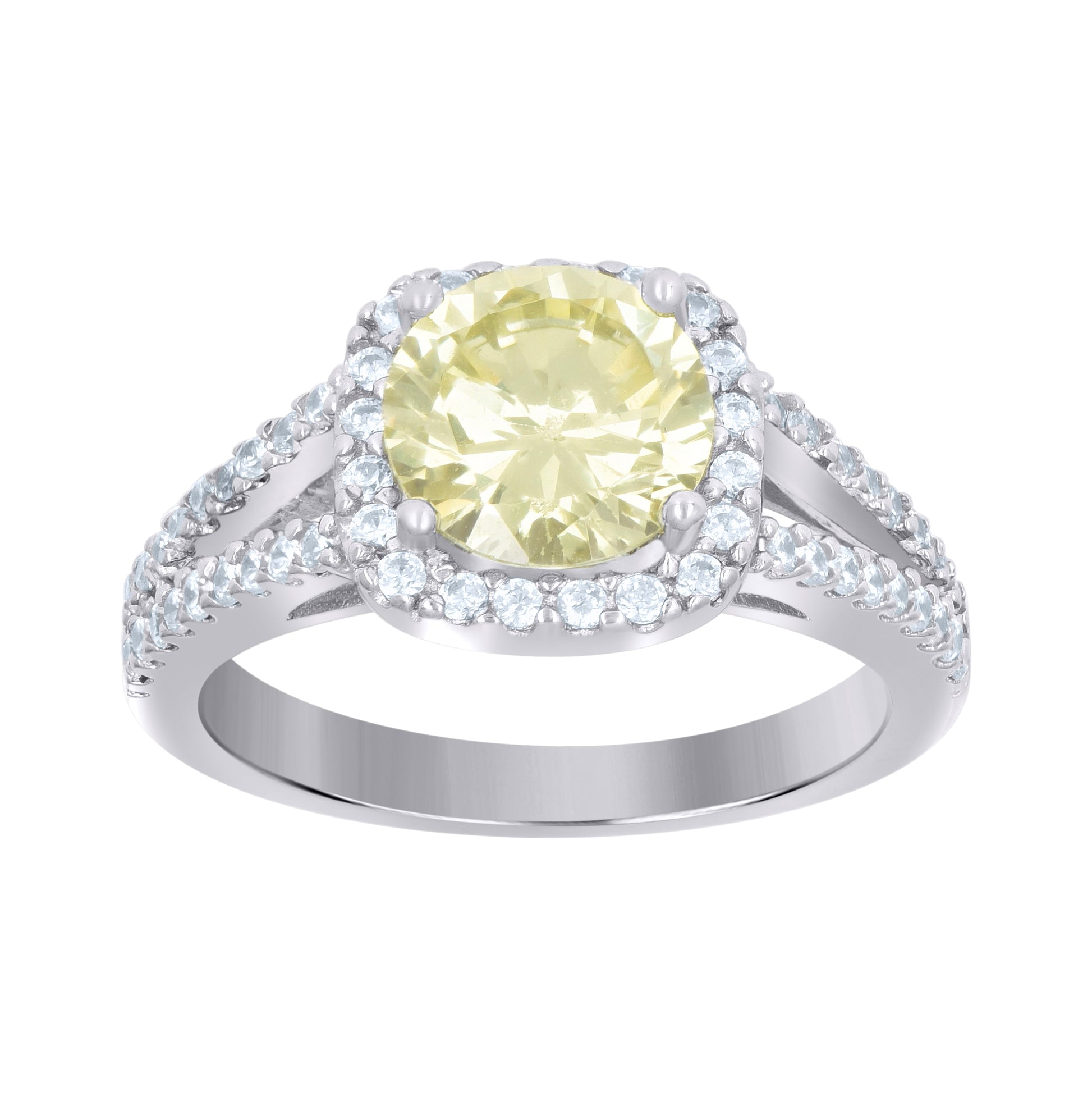 Sterling Silver Womens Cubic Zirconia Sizes 6-9 Yellow Color Center Stone Bridal Anniversary Engagement WeddingBand Ring