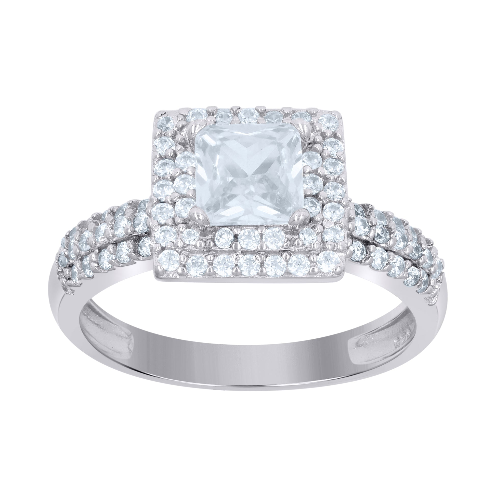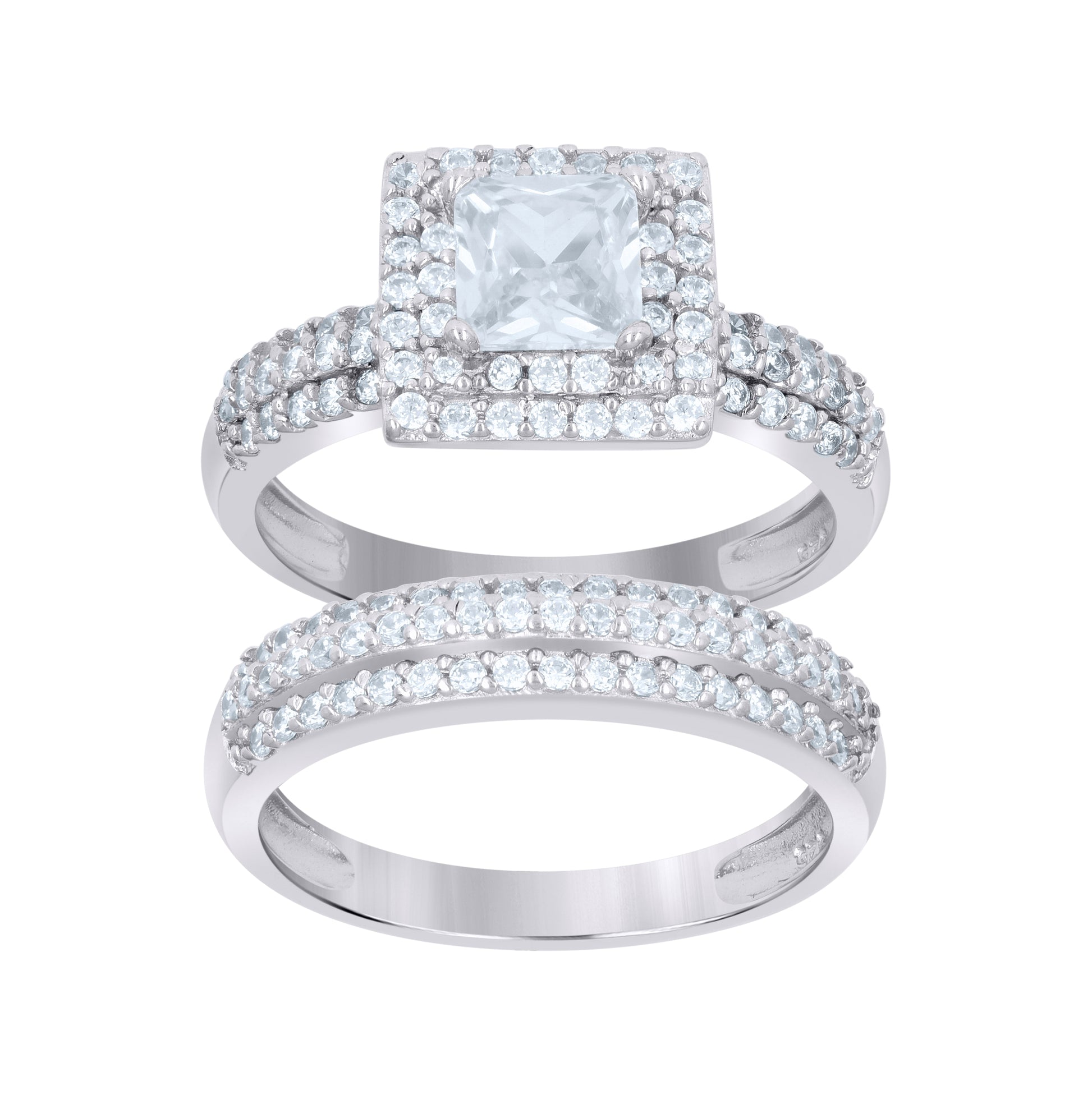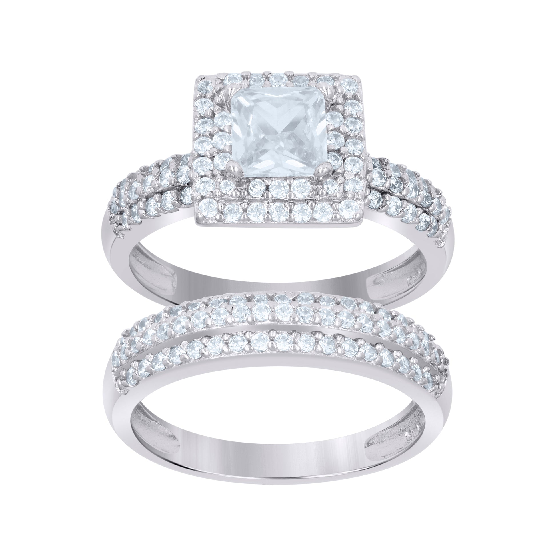 Sterling Silver Womens Cubic Zirconia Sizes 6 To 10 Princess-Cut Center Stone Bridal Set Anniversary Engagement Wedding Ring