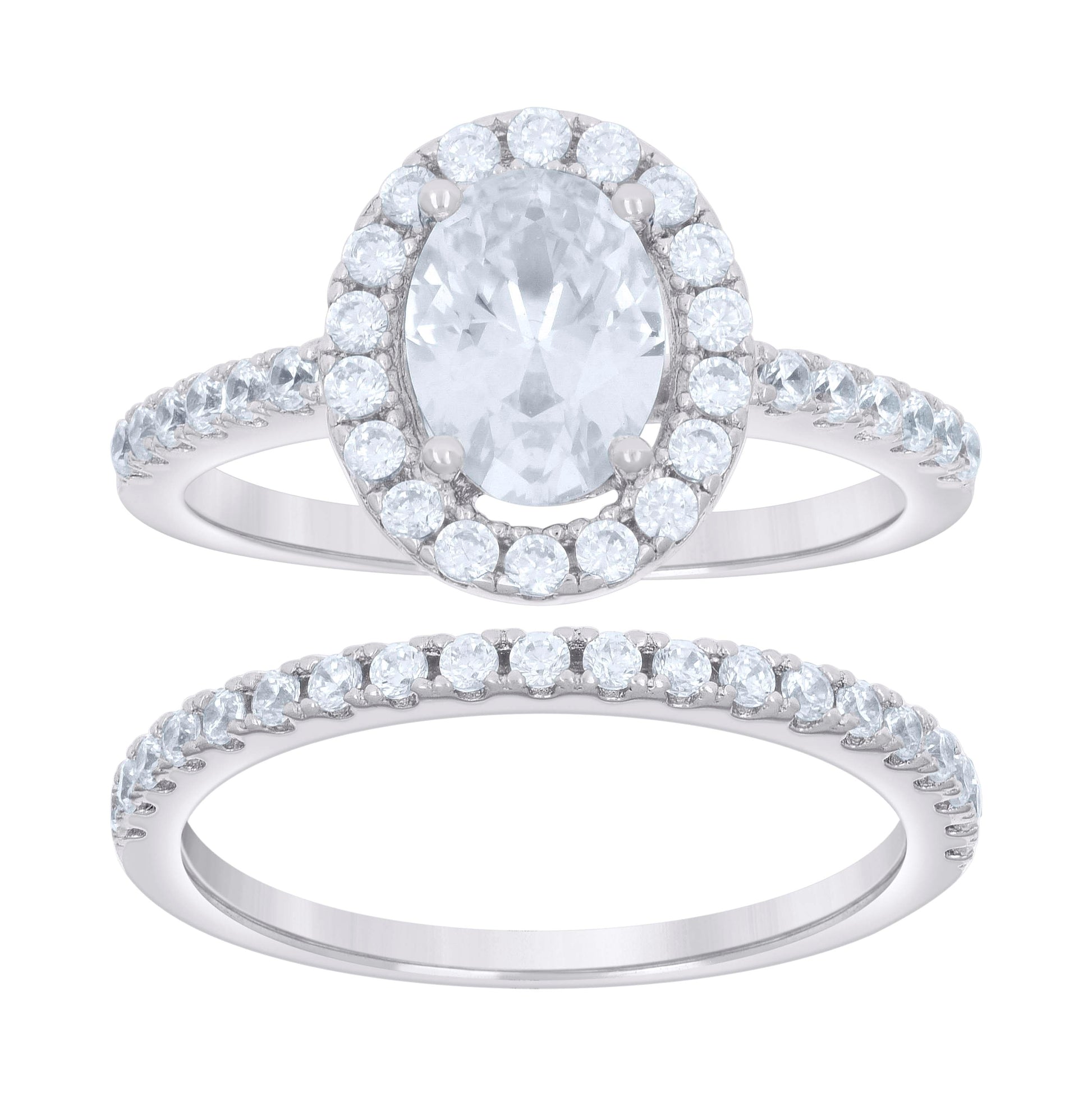 Sterling Silver Womens Cubic Zirconia Sizes 6 To 9 Oval Center Stone Bridal Set Anniversary Engagement Wedding Ring Band