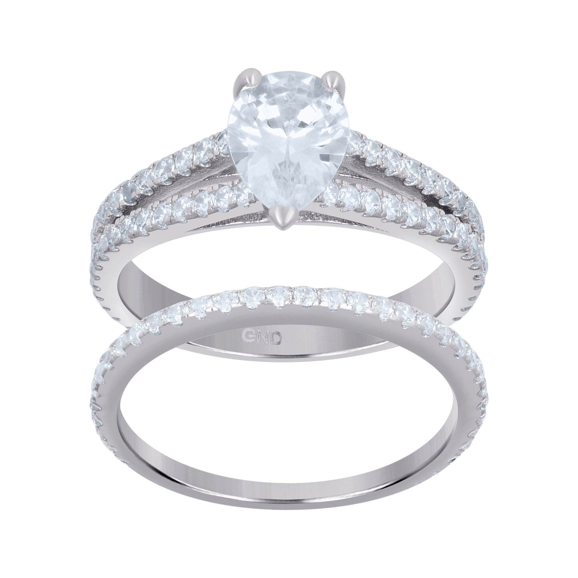 Sterling Silver Womens Cubic Zirconia Sizes 6 To 9 Pear-Cut Center Stone Bridal Set Anniversary Engagement Wedding Ring Band