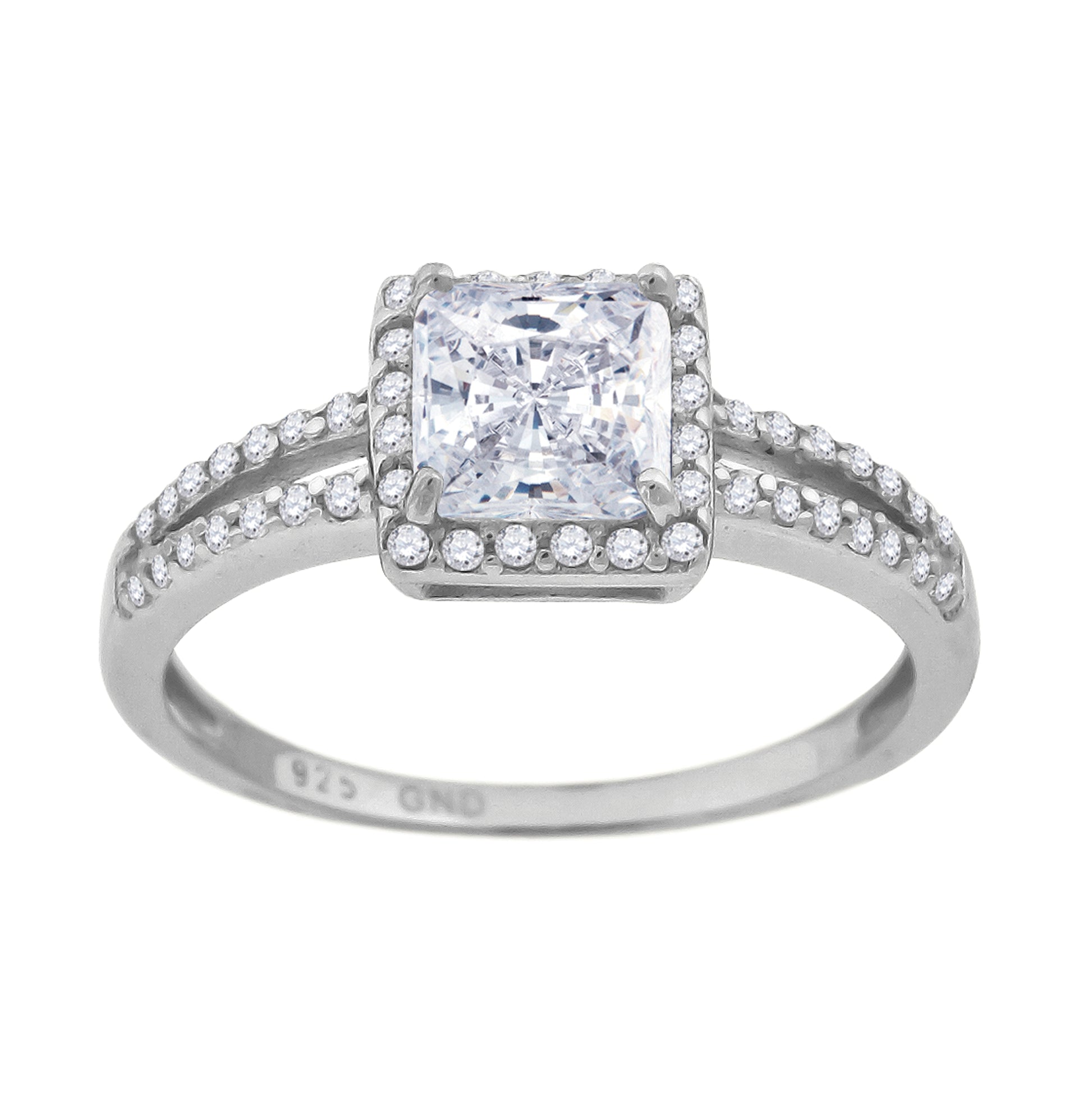 Sterling Silver Womens Cubic Zirconia Sizes 6 To 9 Princess-Cut White Stone Center Bridal Anniversary Wedding Engagement Band Ring Band