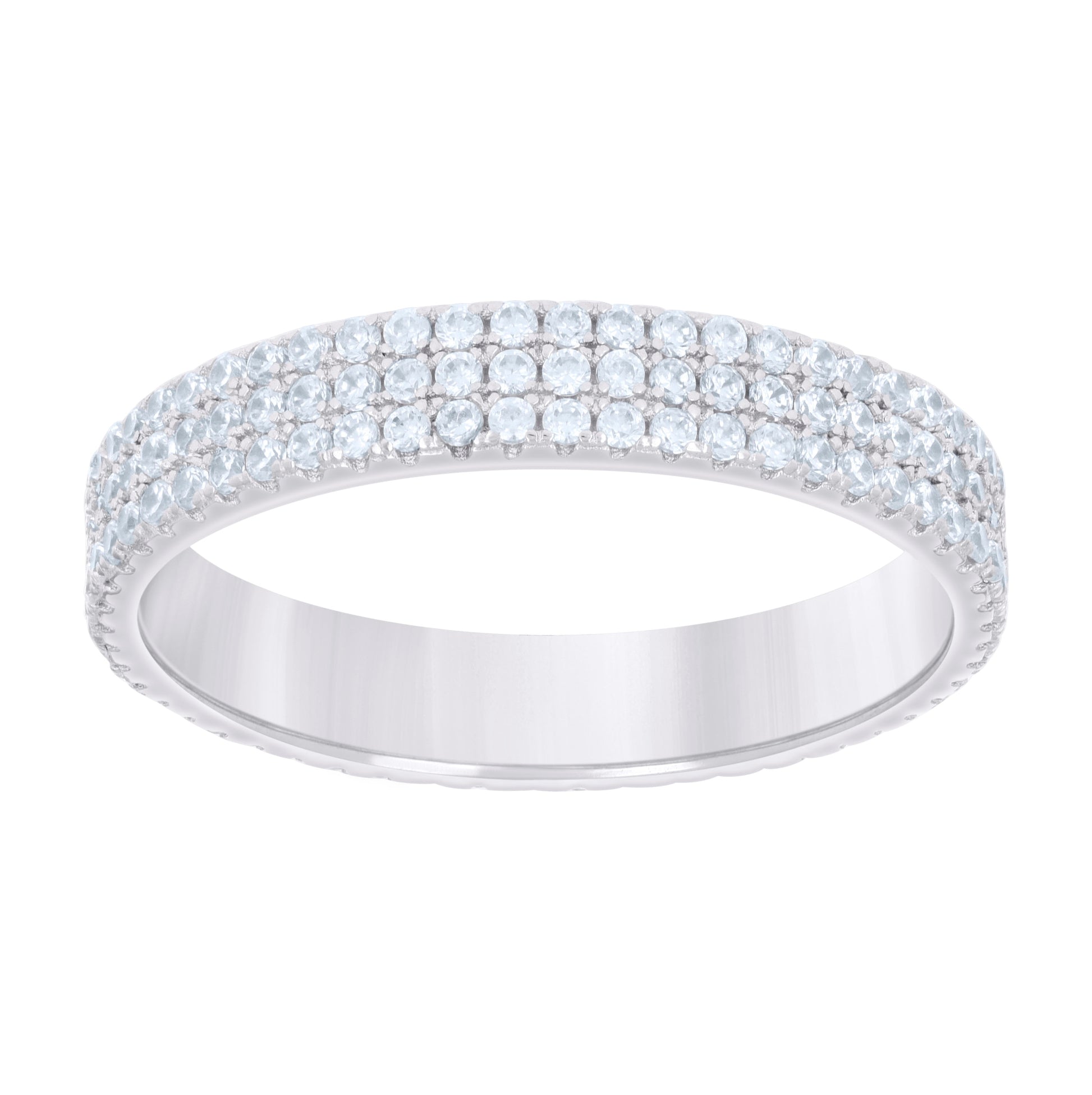 Sterling Silver Womens Cubic-Zirconia Triple Row Cubic Zirconia Bridal Anniversary Engagement Wedding Band Ring