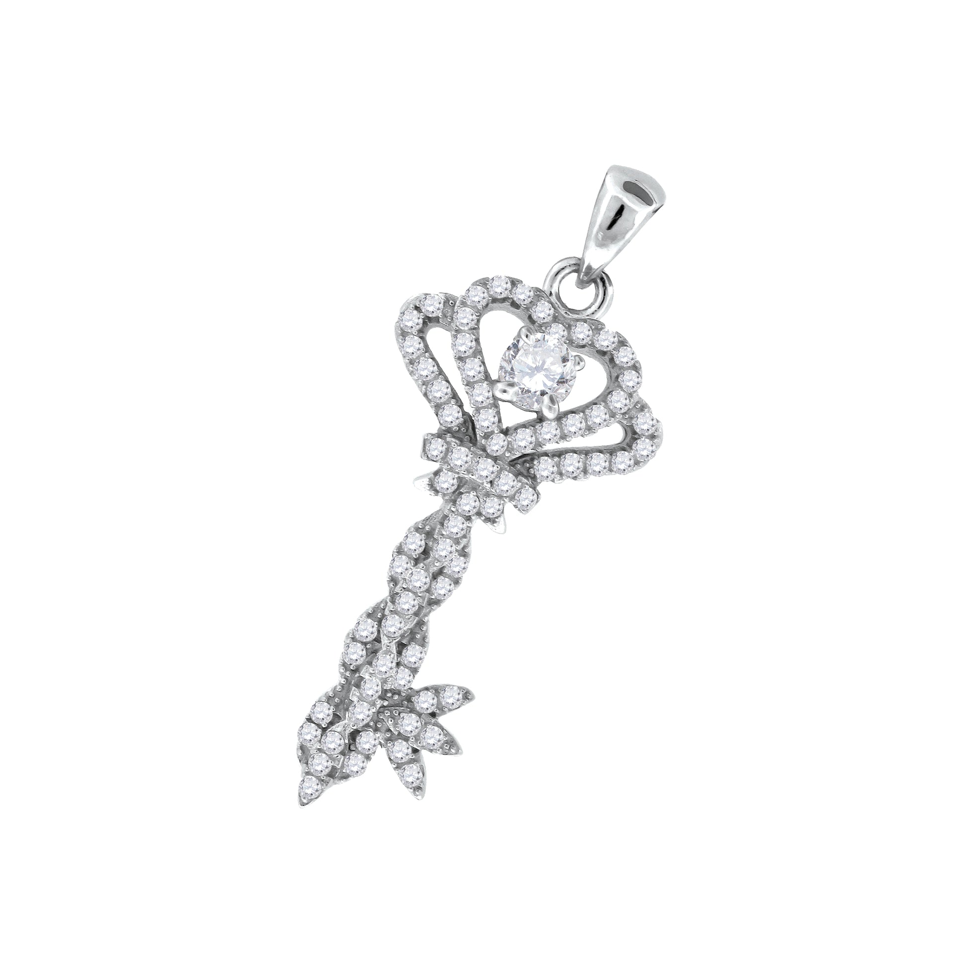 Sterling Silver Womens Cubic-Zirconia Crown Key Charm Pendant
