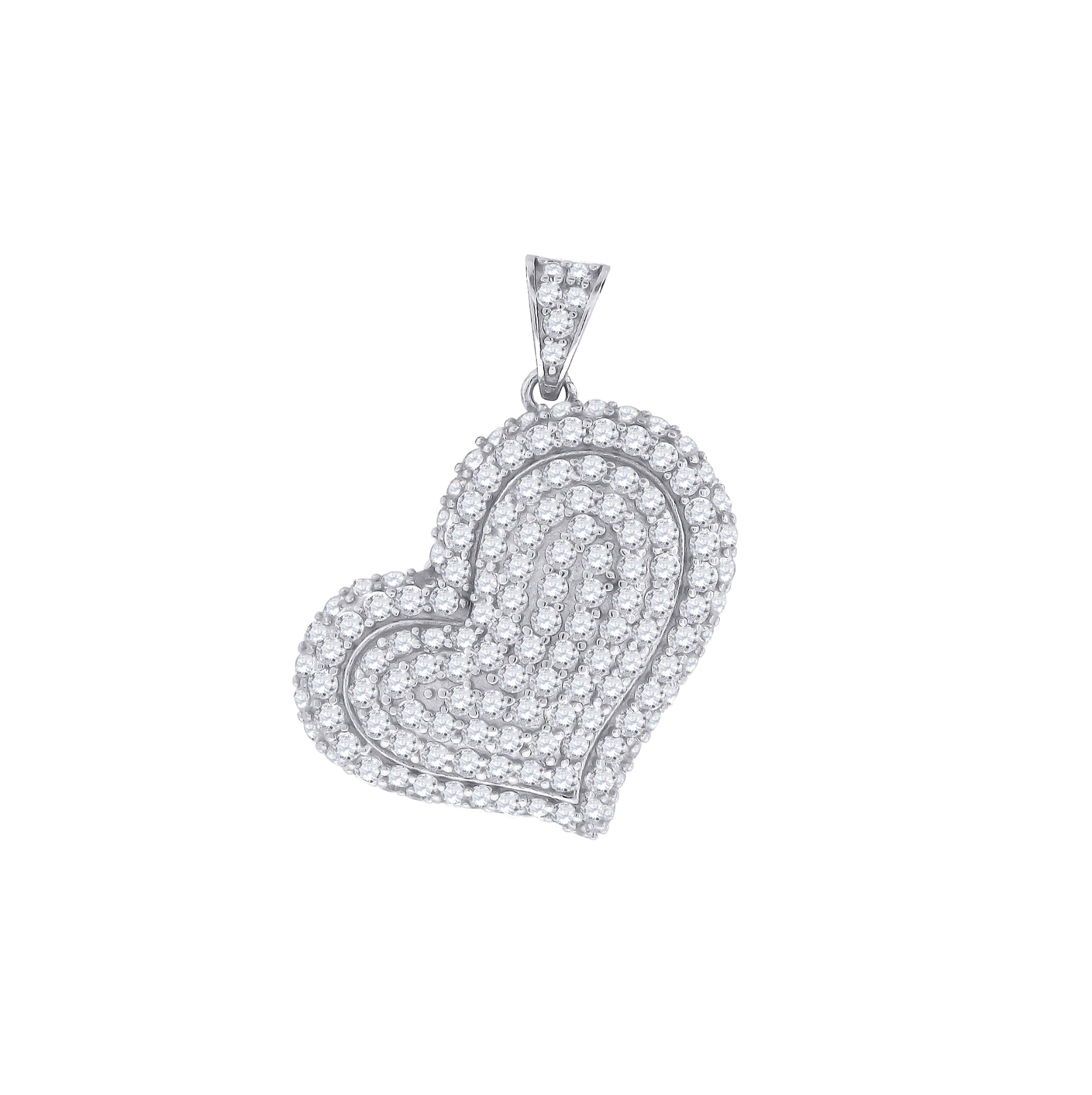 Sterling Silver Womens Cubic-Zirconia Heart Charm Pendant