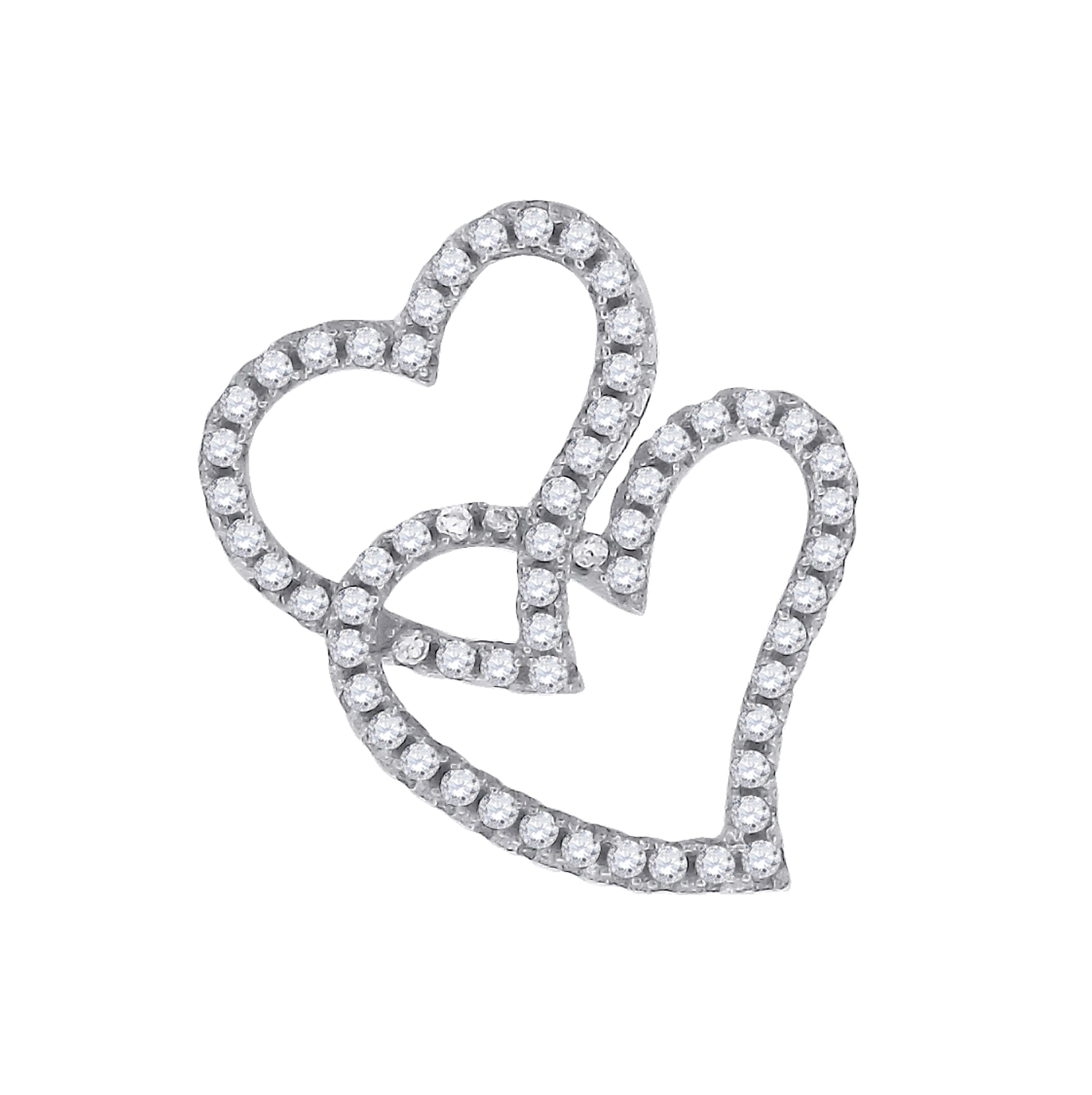 Sterling Silver Womens Cubic-Zirconia Heart Charm Pendant