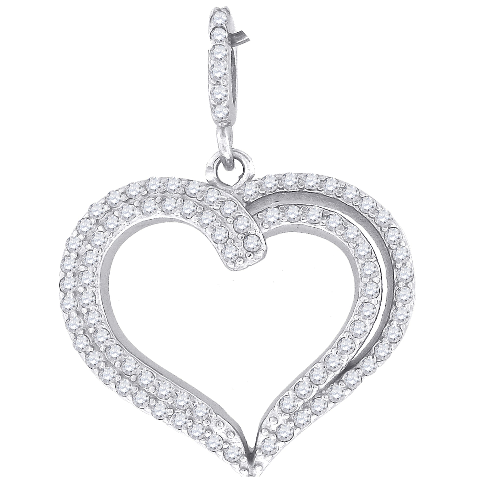 Sterling Silver Womens Cubic-Zirconia Heart Charm Pendant