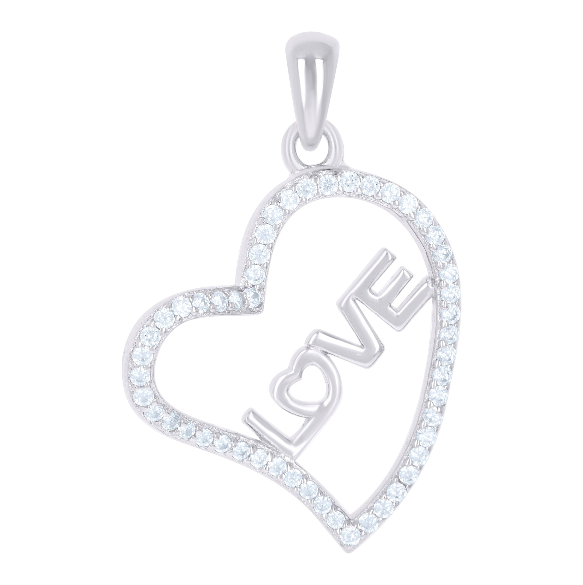 Sterling Silver Womens Cubic-Zirconia Heart Charm Pendant