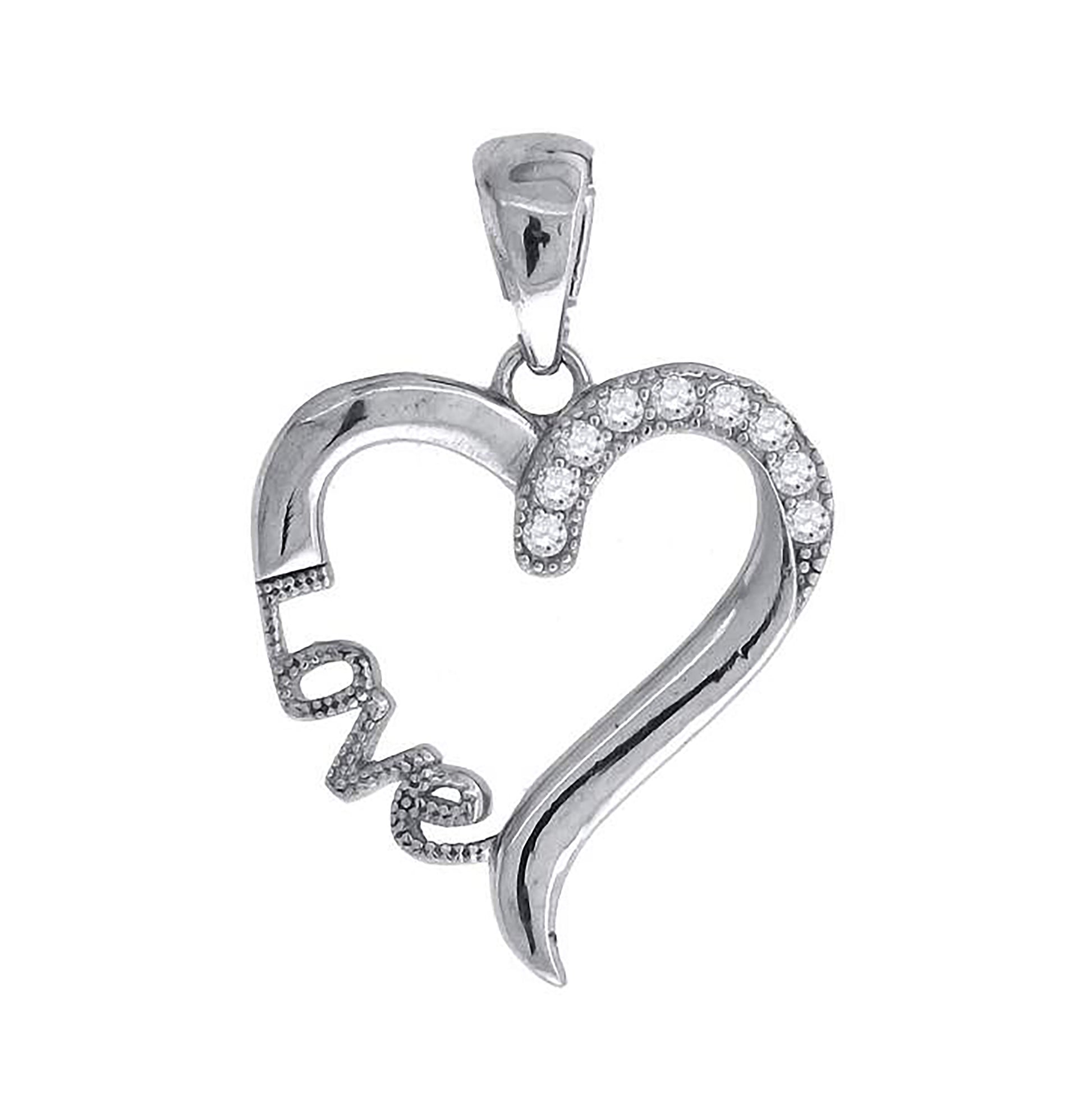 Sterling Silver Womens Cubic-Zirconia Heart Charm Pendant
