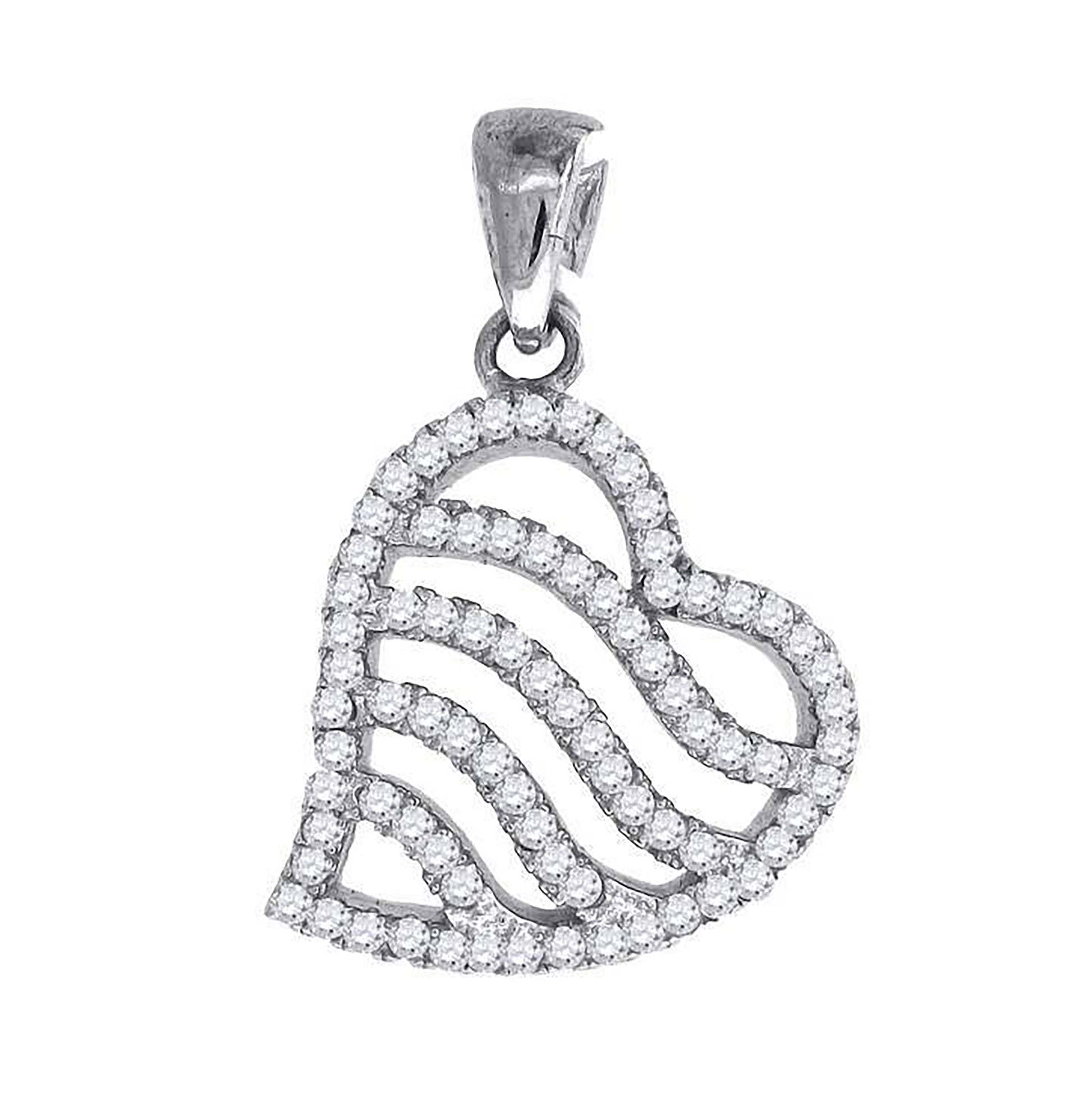 Sterling Silver Womens Cubic-Zirconia Heart Charm Pendant