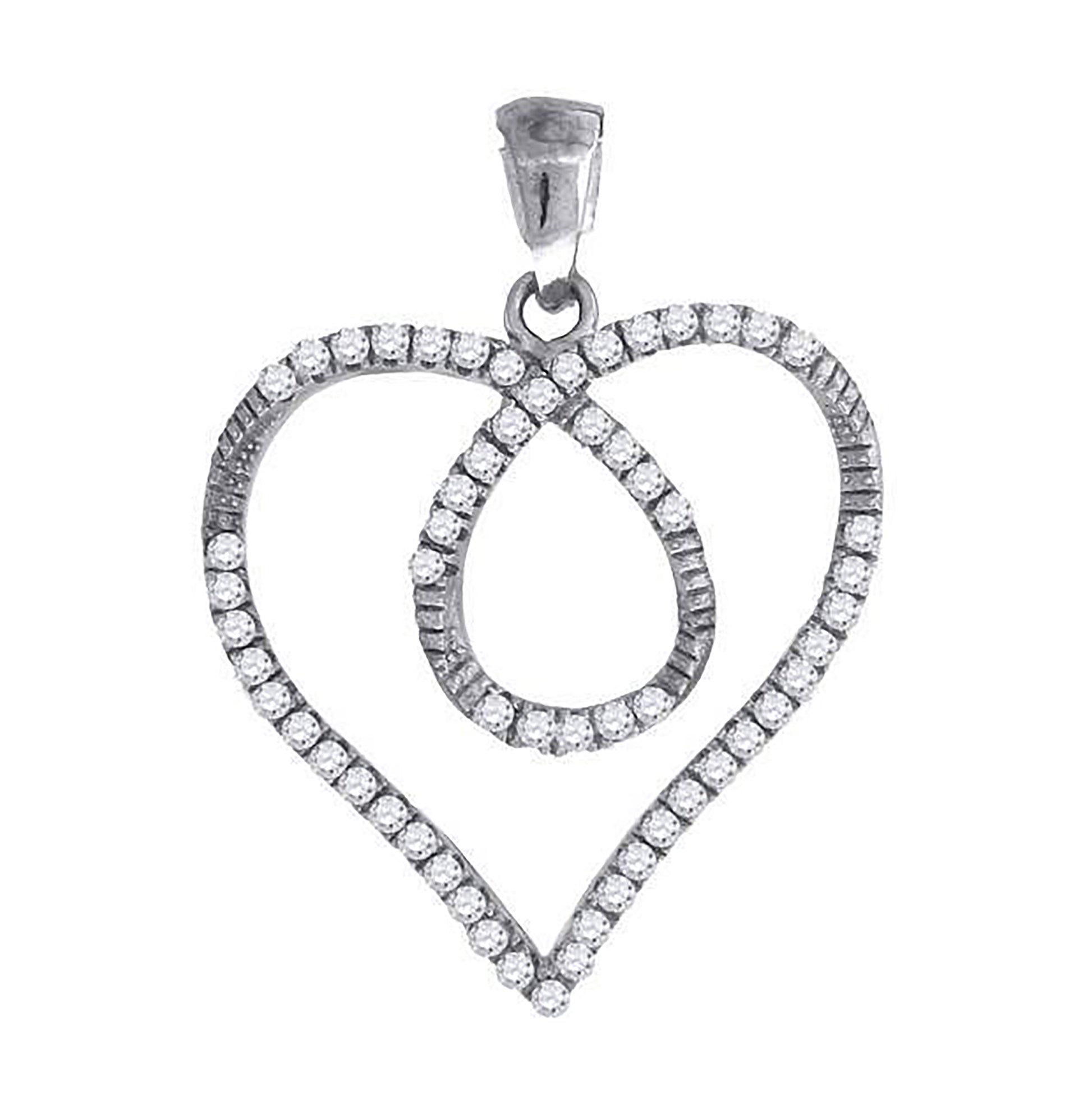 Sterling Silver Womens Cubic-Zirconia Heart Charm Pendant