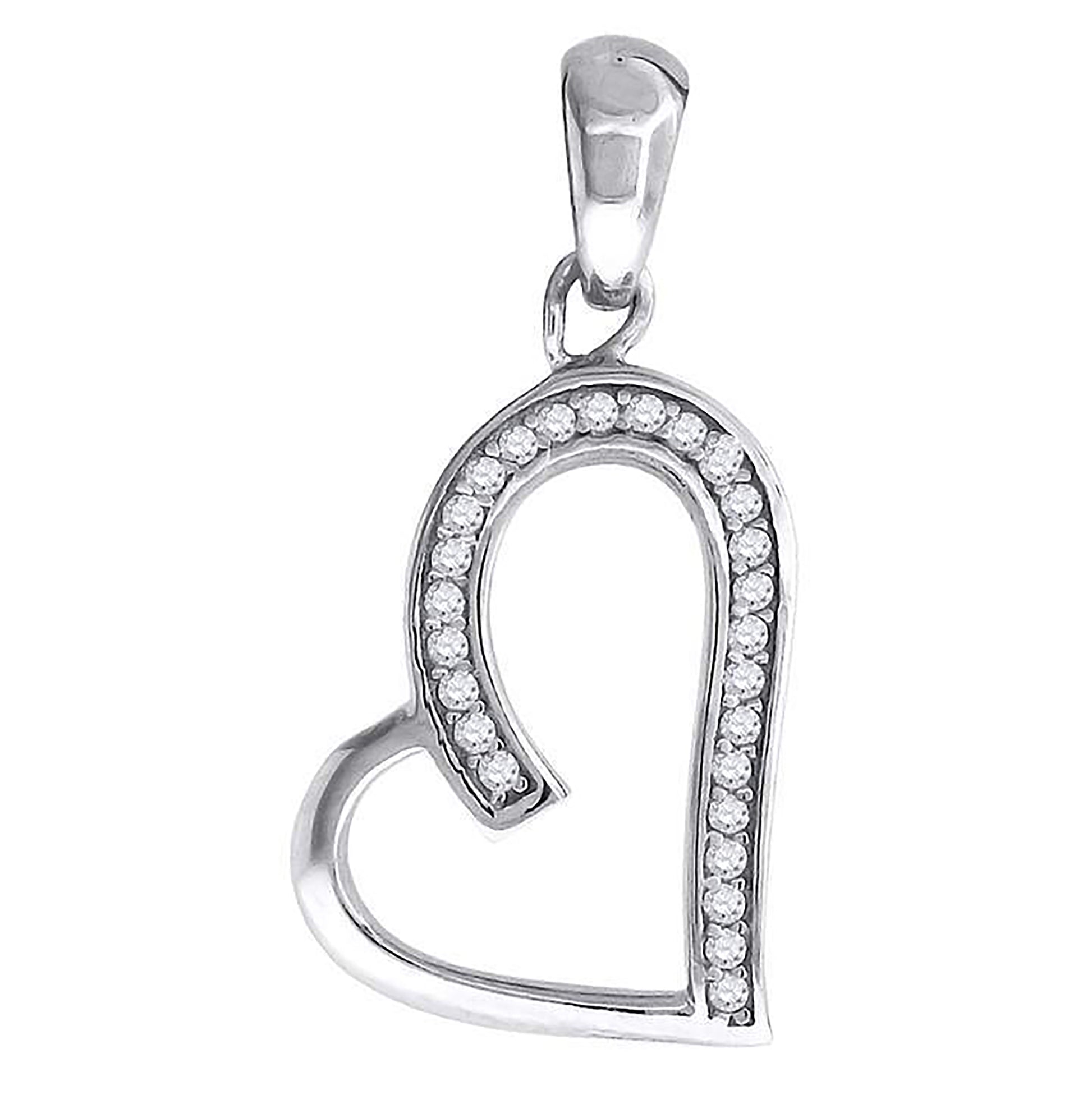 Sterling Silver Womens Cubic-Zirconia Heart Charm Pendant