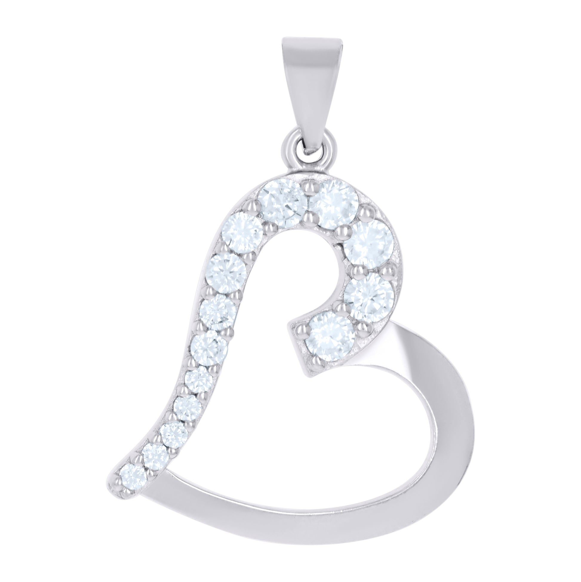 Sterling Silver Womens Cubic-Zirconia Heart Charm Pendant