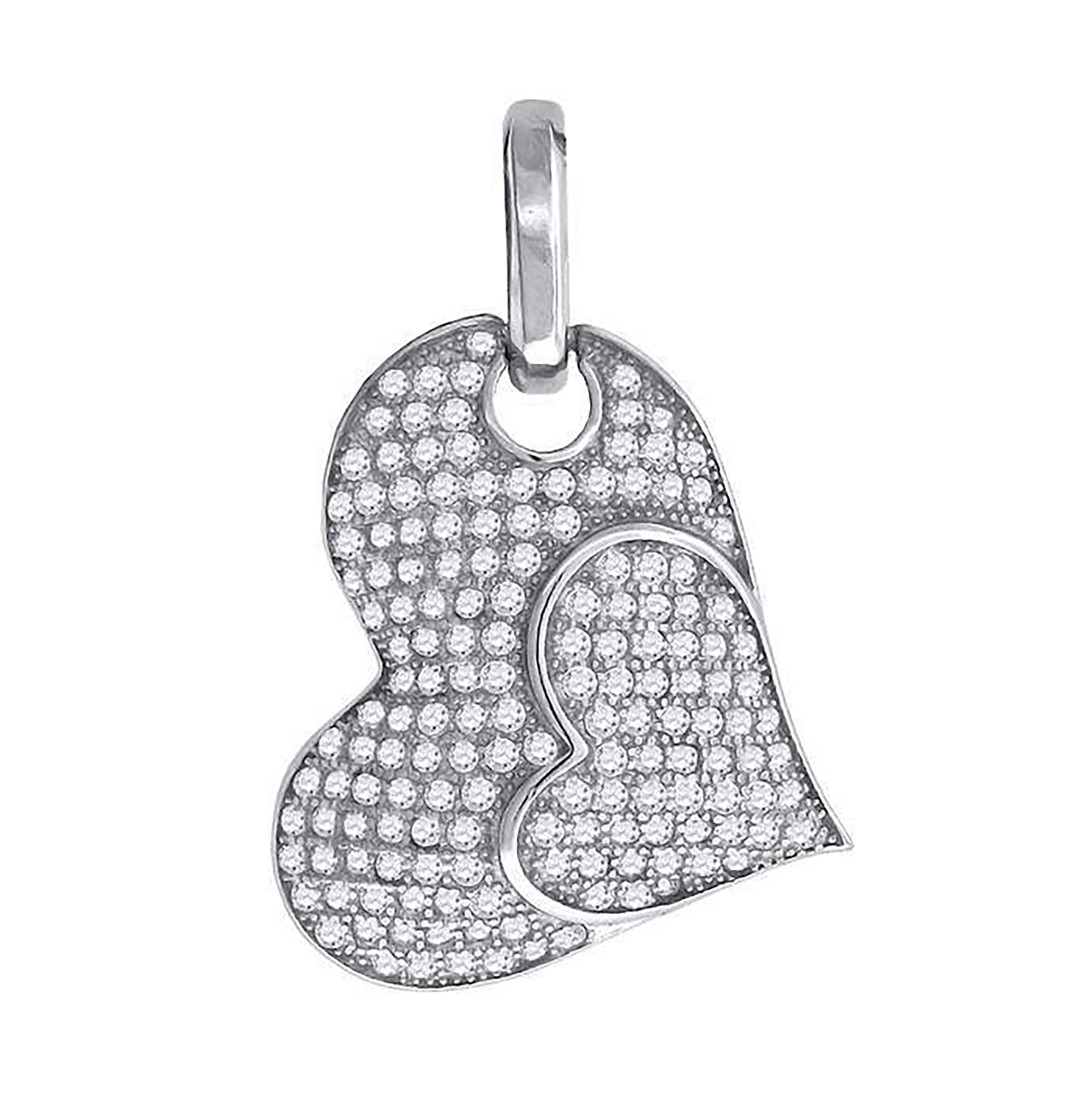 Sterling Silver Womens Cubic-Zirconia Heart Charm Pendant